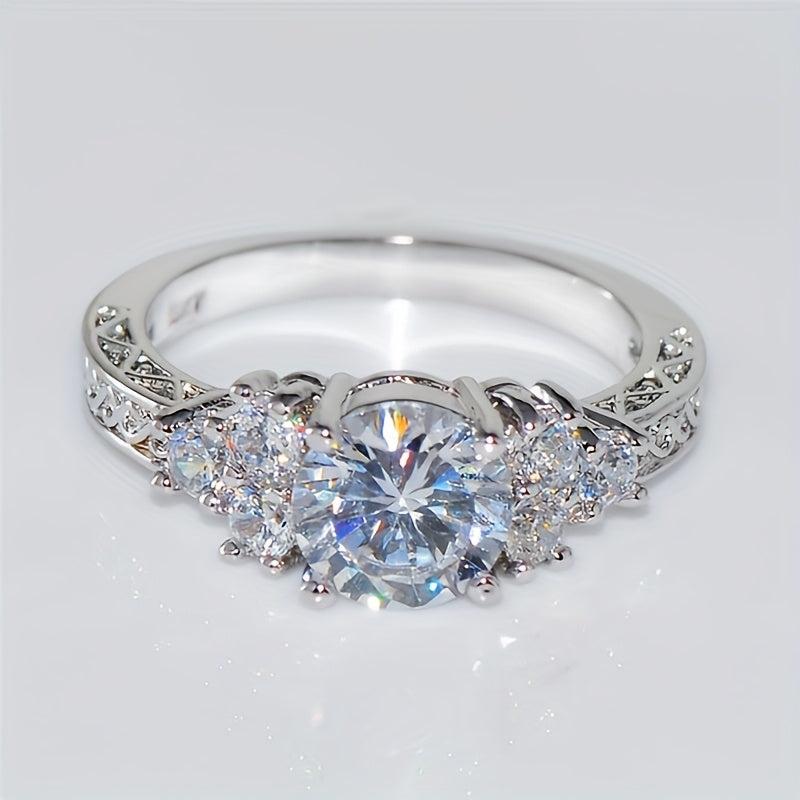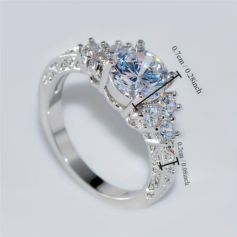 Elegant and timeless round zirconia stone ring set in four prongs. Ideal for weddings, banquets, and engagement parties.