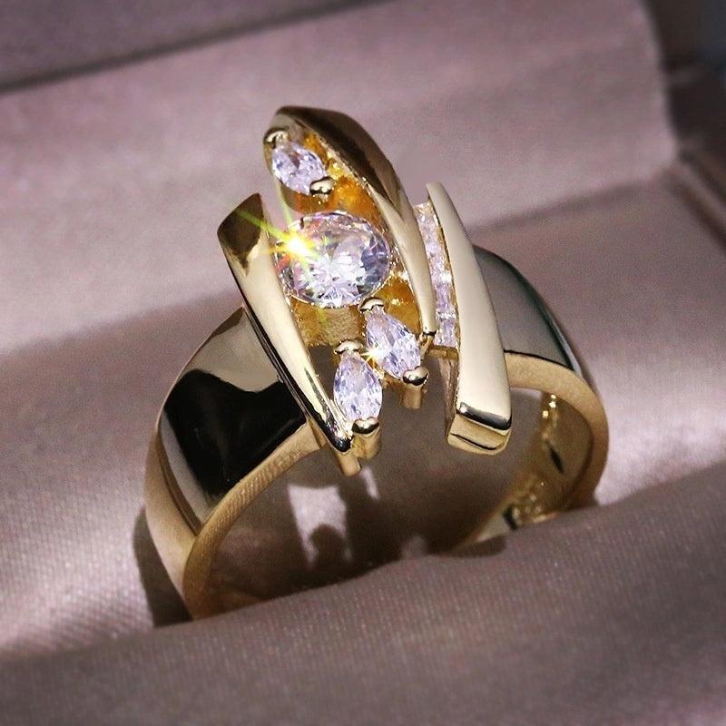 RYYM Marquise Zirconia Ring KC Golden Wide Band Wedding Band