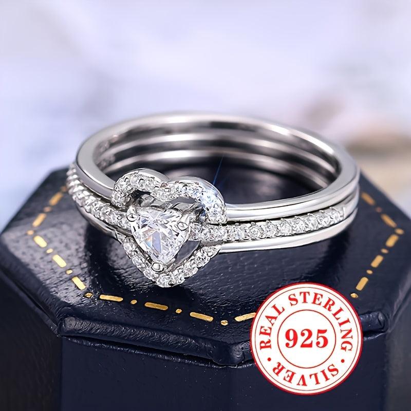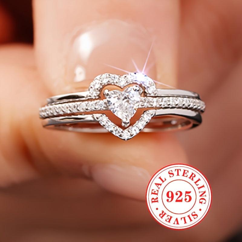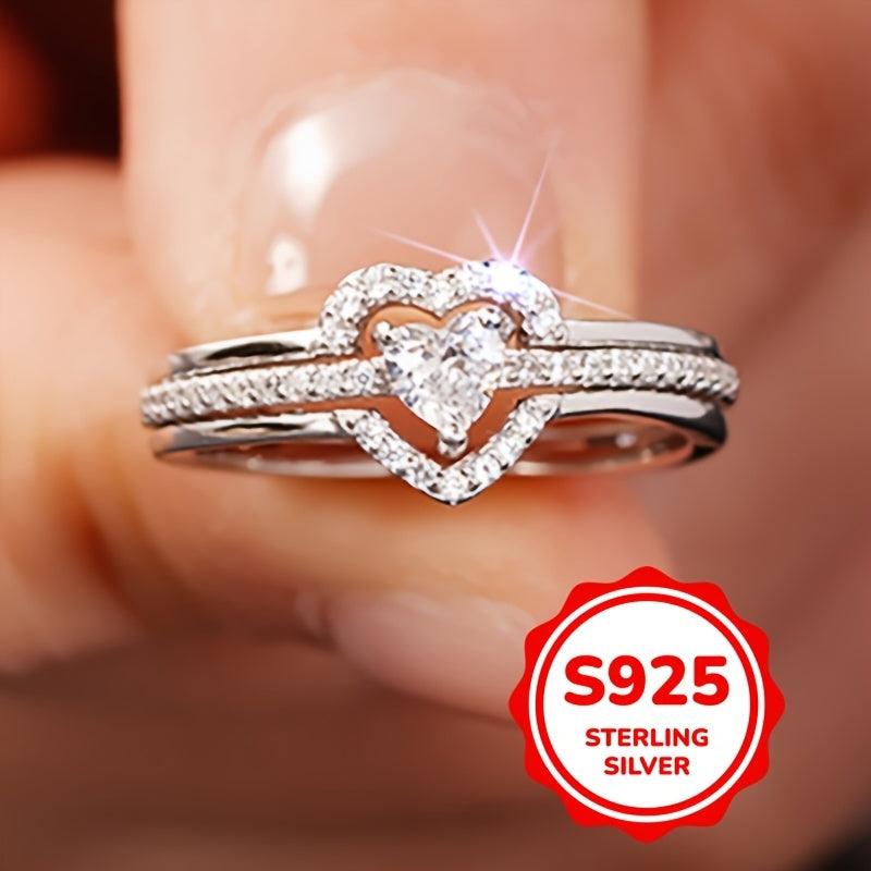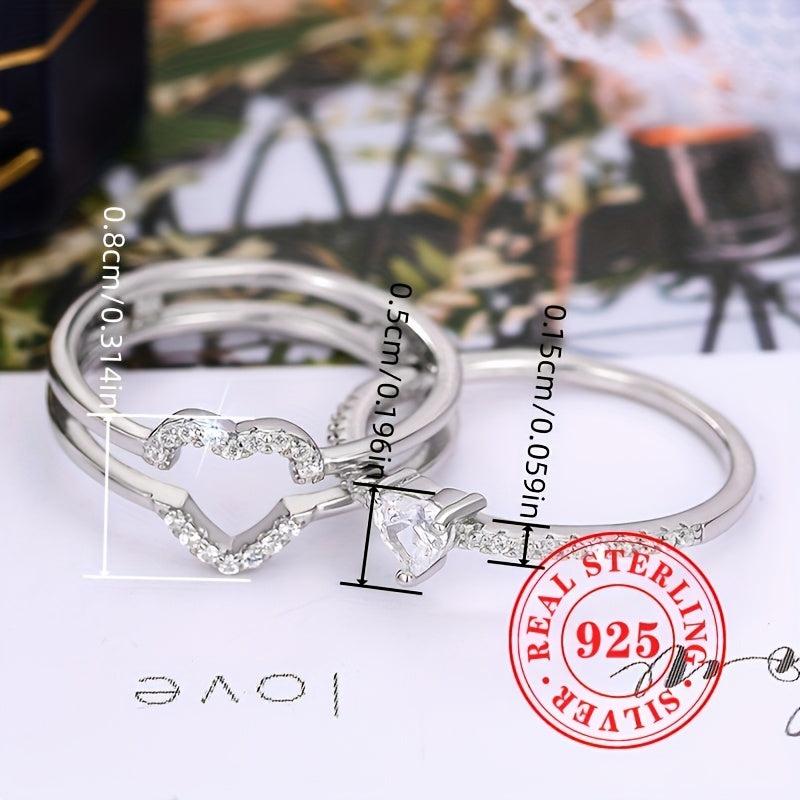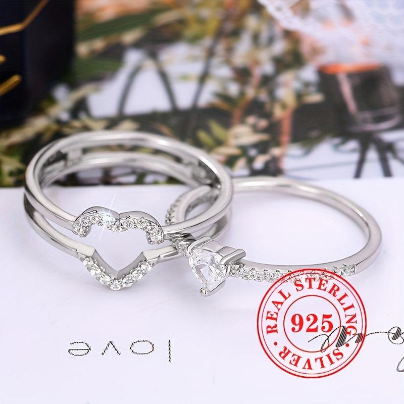 This stunning S925 pure silver ring set features a double-layered design with sparkling zirconia inlays, perfect for women's wedding, engagement, banquet. Show your love with this elegant piece.