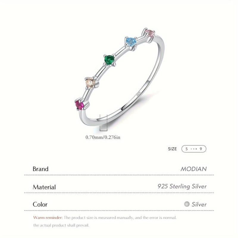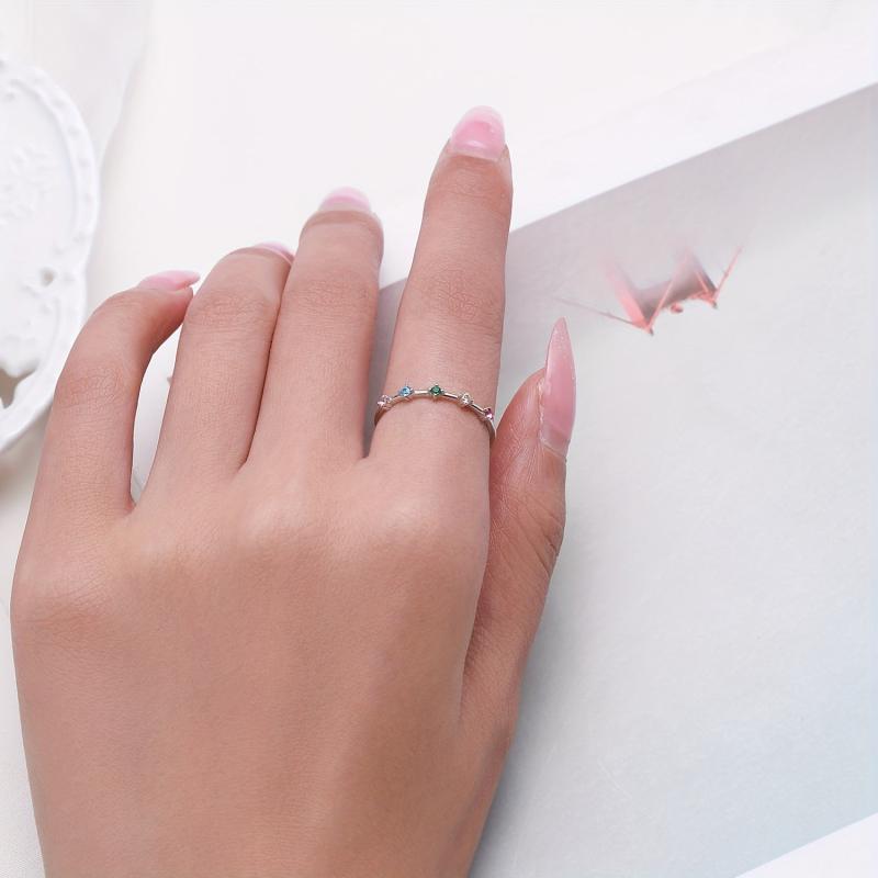 Add a pop of color to your outfit with this stylish S925 silvery ring featuring colorful zirconia inlay. The slim and versatile design makes it perfect for stacking or wearing alone.