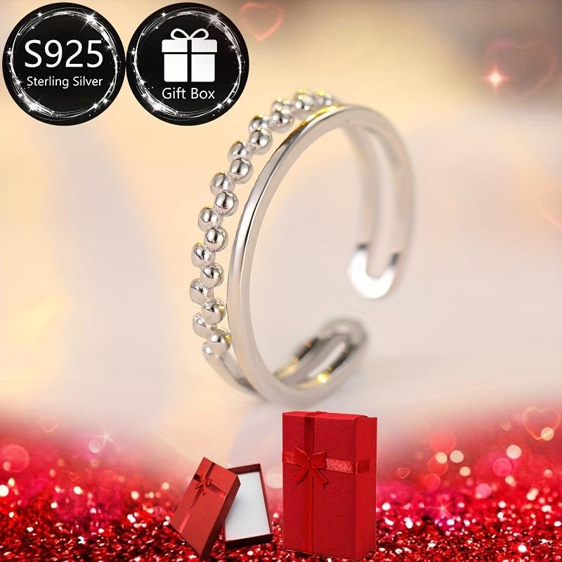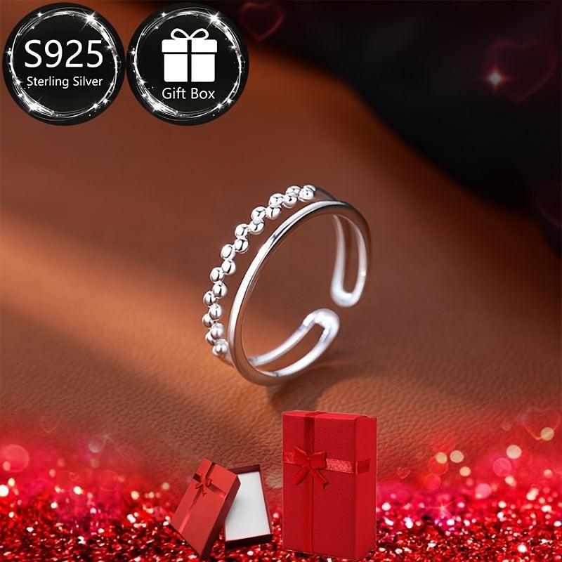 Elevate your style with this stunning S925 silver double layer round bead ring. This ring features intricate details that add a touch of elegance to any outfit. Perfect for everyday wear or special occasions.