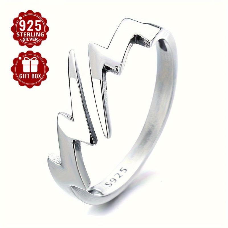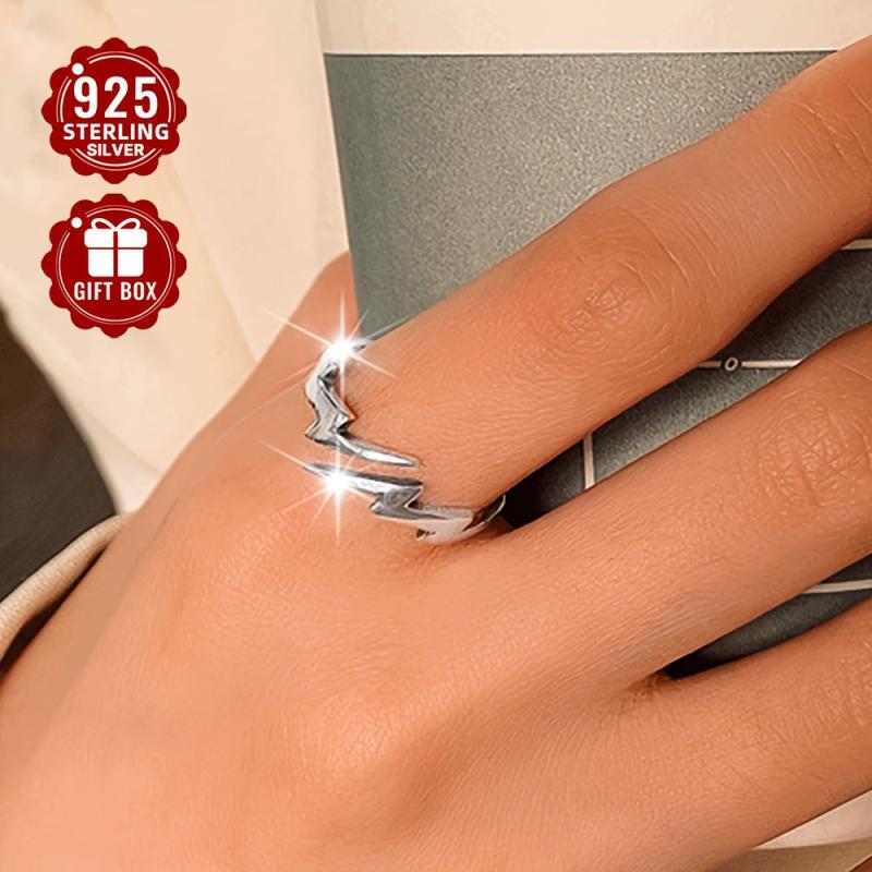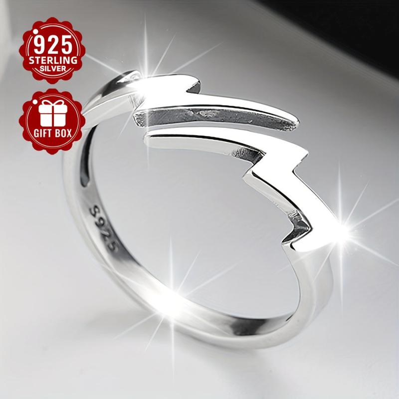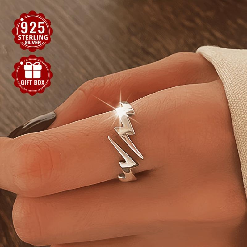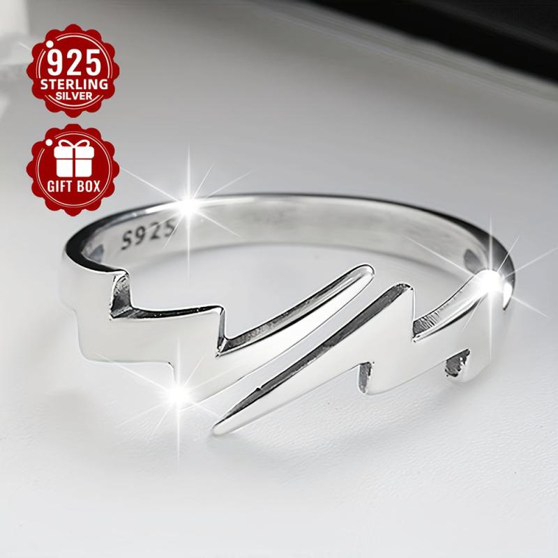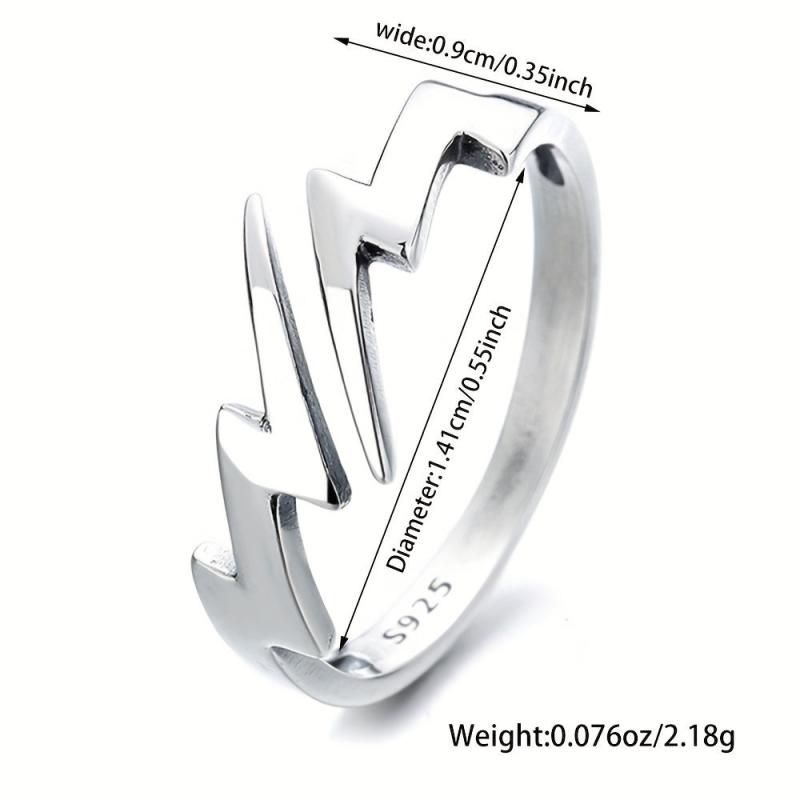 This S925 pure silvery ring features a minimalist lightning design suitable for both men and women. It is hypoallergenic with a low allergy index, making it a stylish and safe accessory.