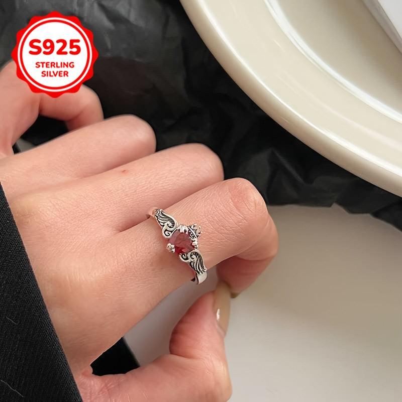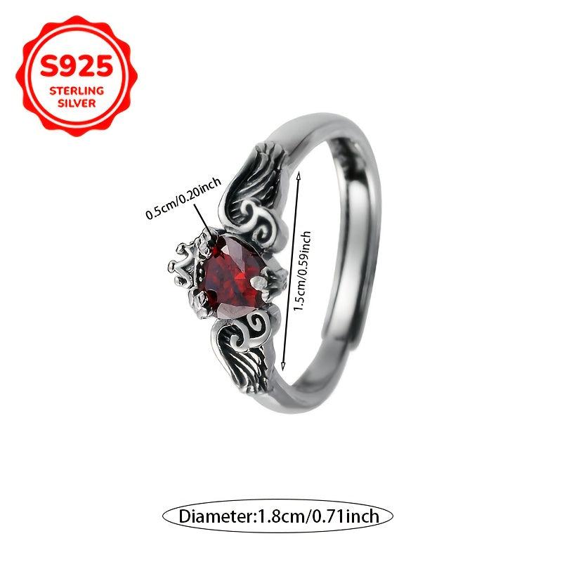 This elegant S925 ring is designed for women with a low allergy feature. It has a French crown wings heart design, perfect for internet celebrities and couples. Ideal as a gift or for daily wear, this accessory adds a decorative touch to your outfit.