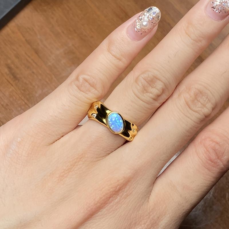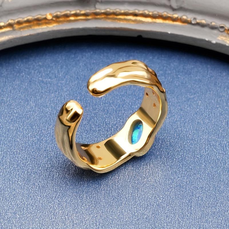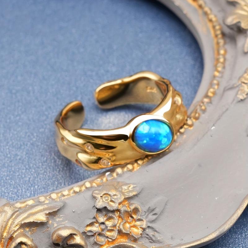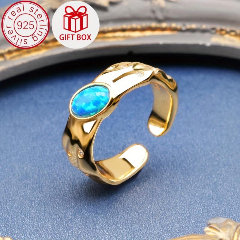 This stunning S925 sterling silver opal ring is perfect for weddings and parties. The ring features a golden plated design that enhances the beauty of the opal stone.