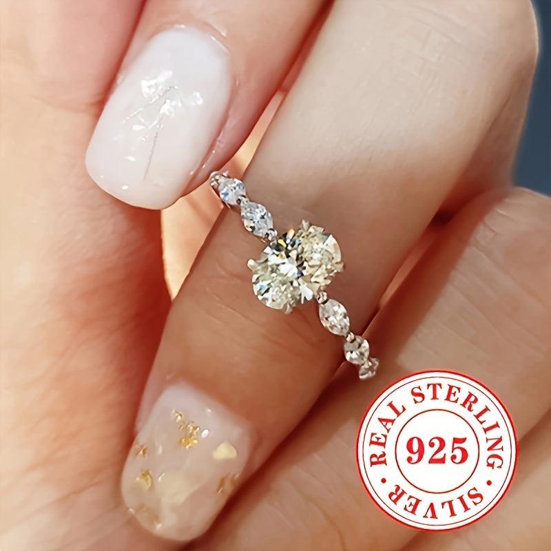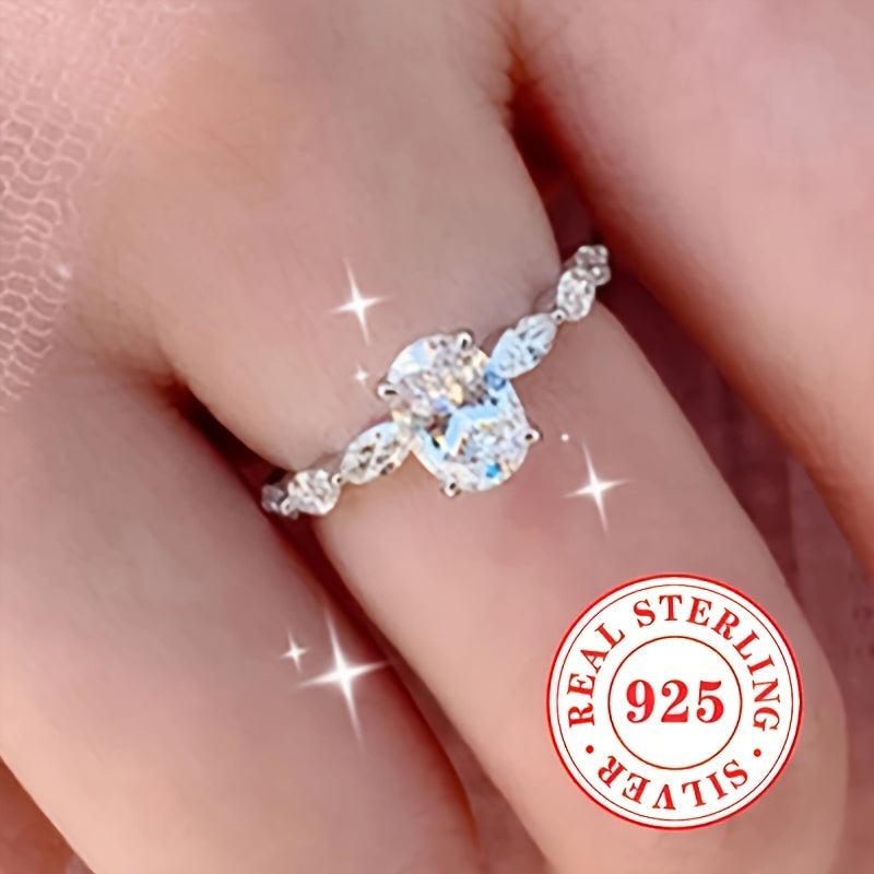 Elegant S925 sterling silver engagement ring featuring an oval zirconia stone, perfect for weddings, bridesmaids, and daily wear. Rhodium plated for added durability and shine.