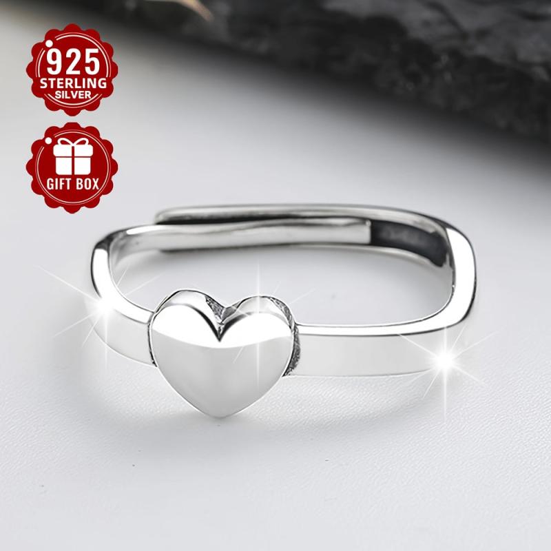 This stylish adjustable ring is made of pure S925 silver with a small heart square design. Perfect for dating activities and casual wear.