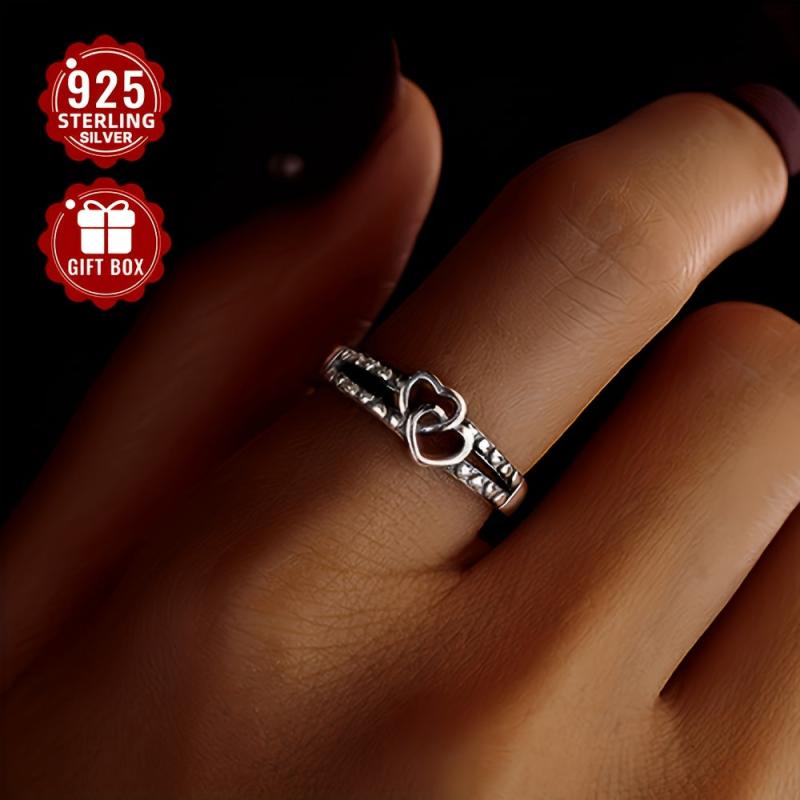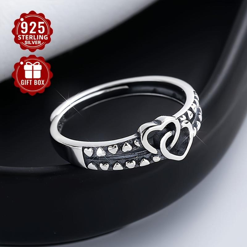 This elegant ring features a double layer heart interlocking design, perfect for everyday wear and travel, made of high-quality S925 silver.