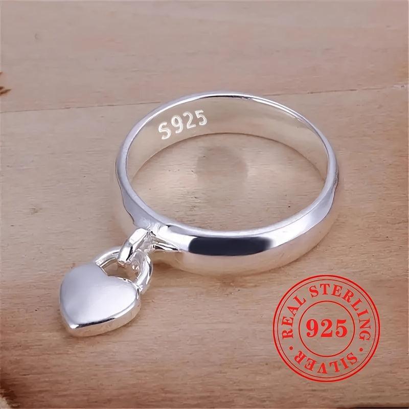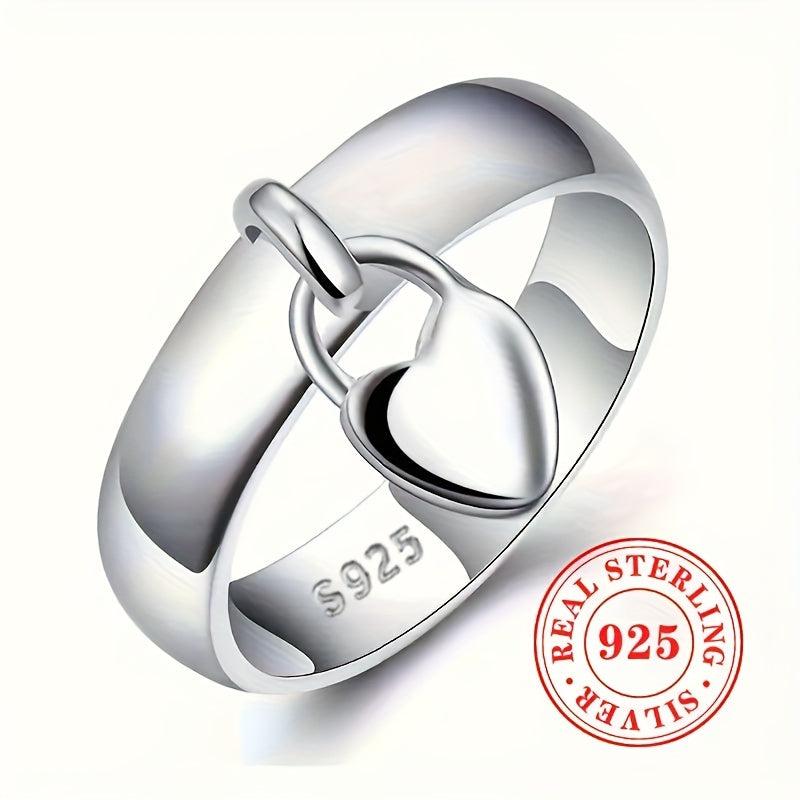 This elegant S925 pure silvery ring features a love pendant design, perfect for all occasions.