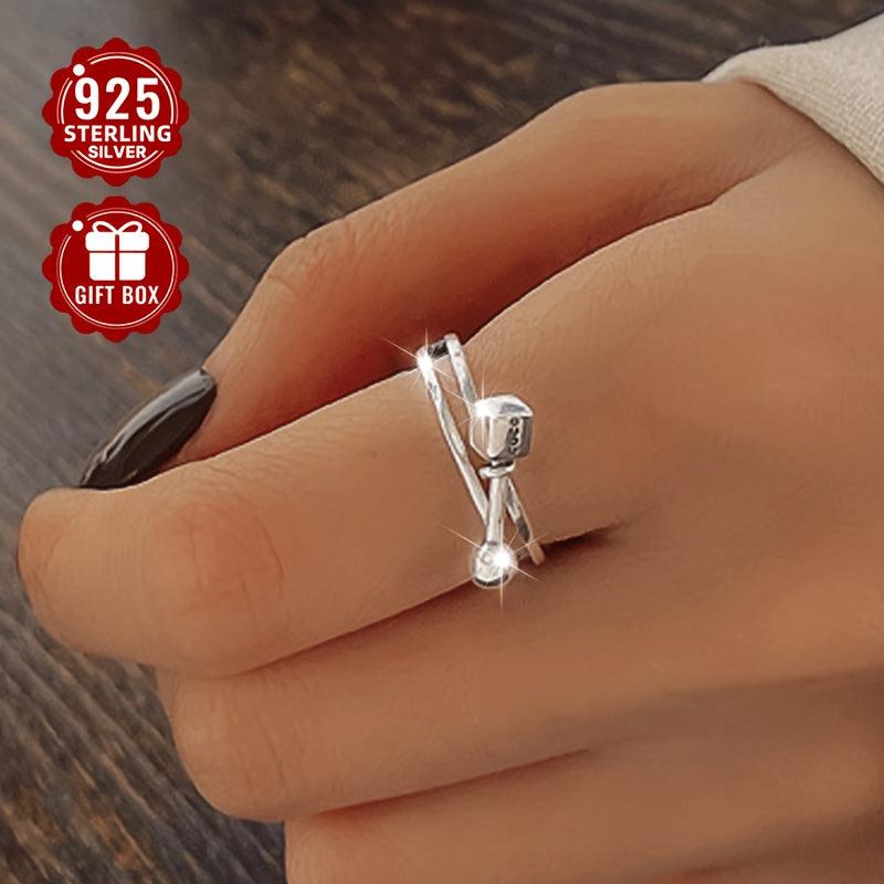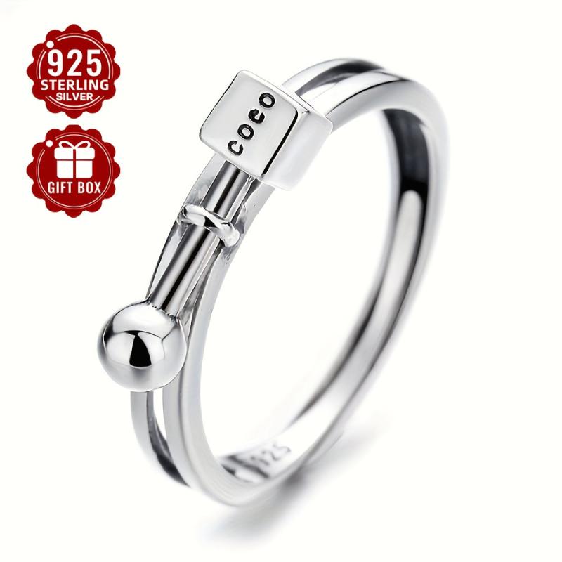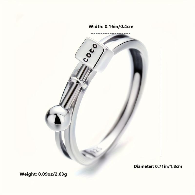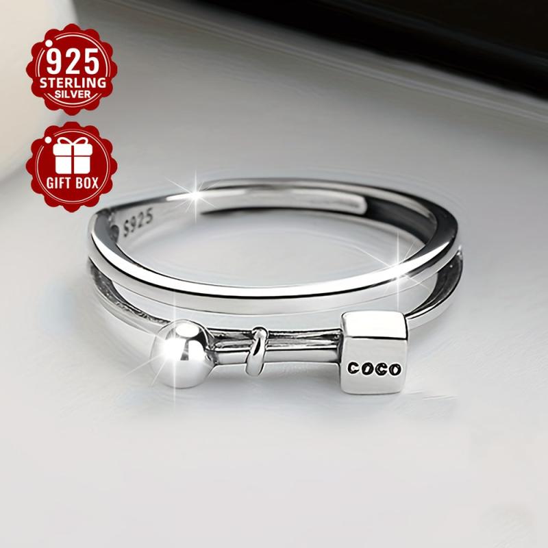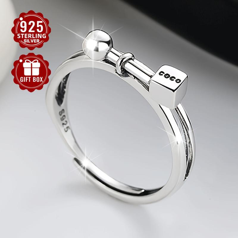 This stylish open ring features a creative design with letter, geometry, and dumbbell elements. Made from pure S925 silver, it is adjustable to fit both men and women. Perfect for a neutral style with a small sense of sophistication.