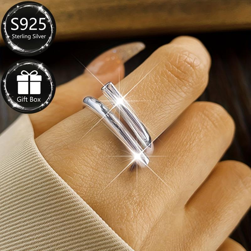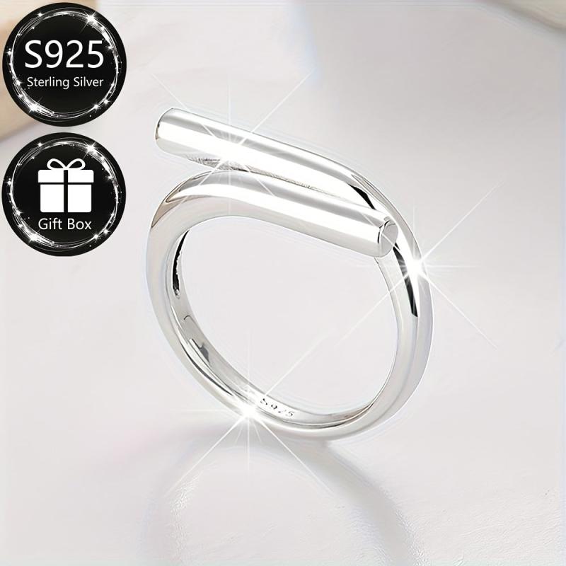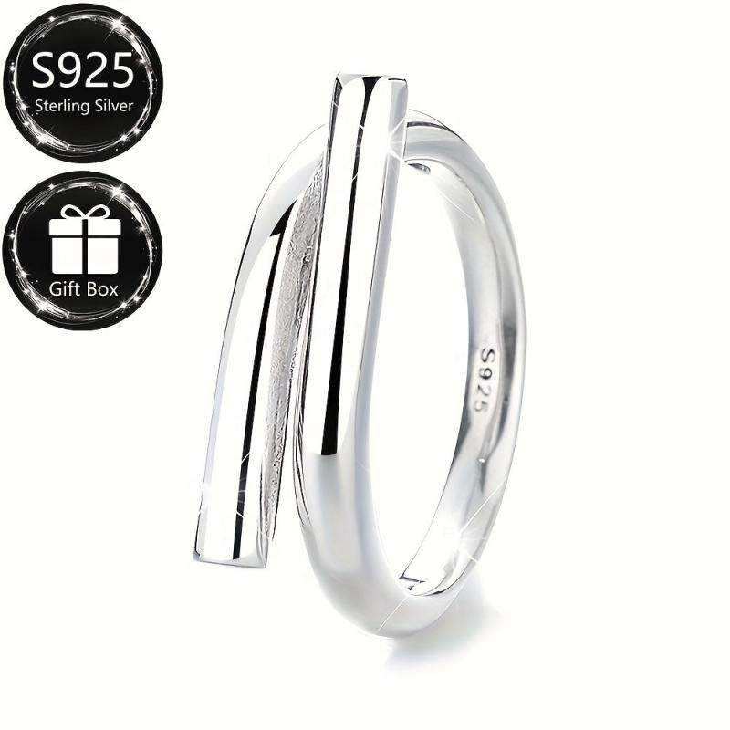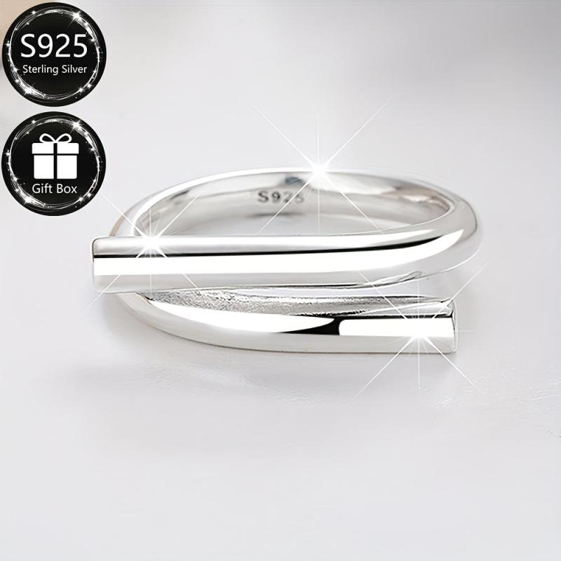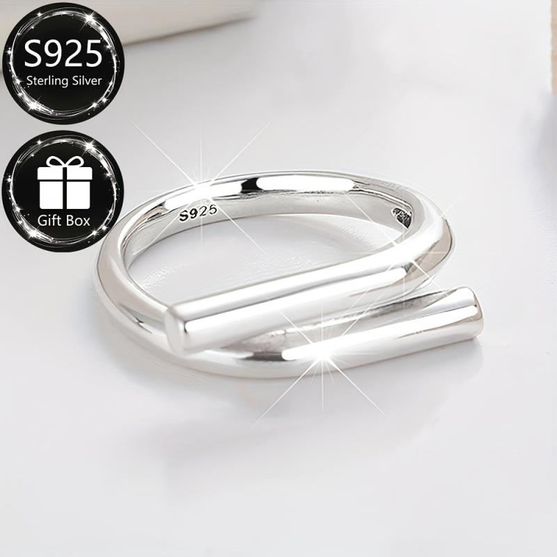 This S925 pure silvery open ring features a retro geometric design, suitable for party and casual wear.