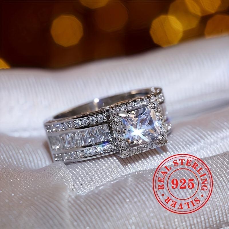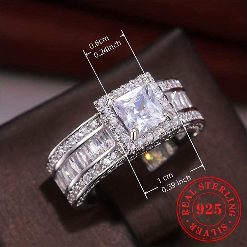 Elegant S925 pure silvery ring with square cut synthetic zirconia, perfect for engagement or wedding. Enhance your jewelry collection with this stunning accessory.