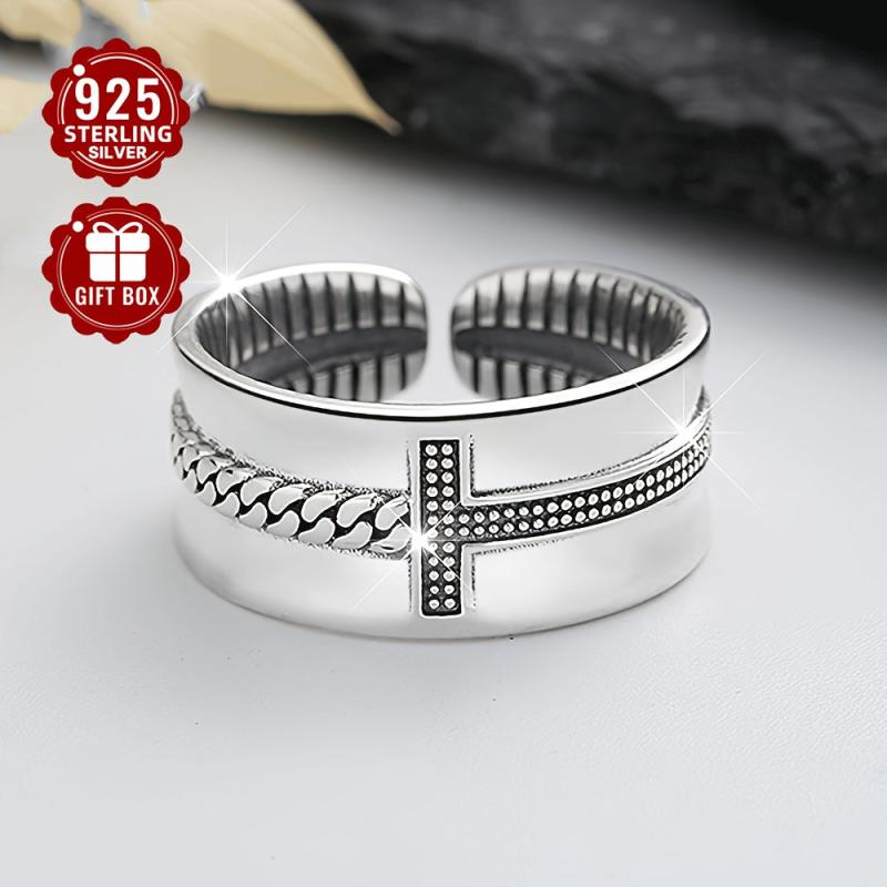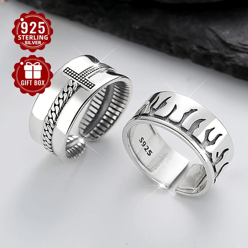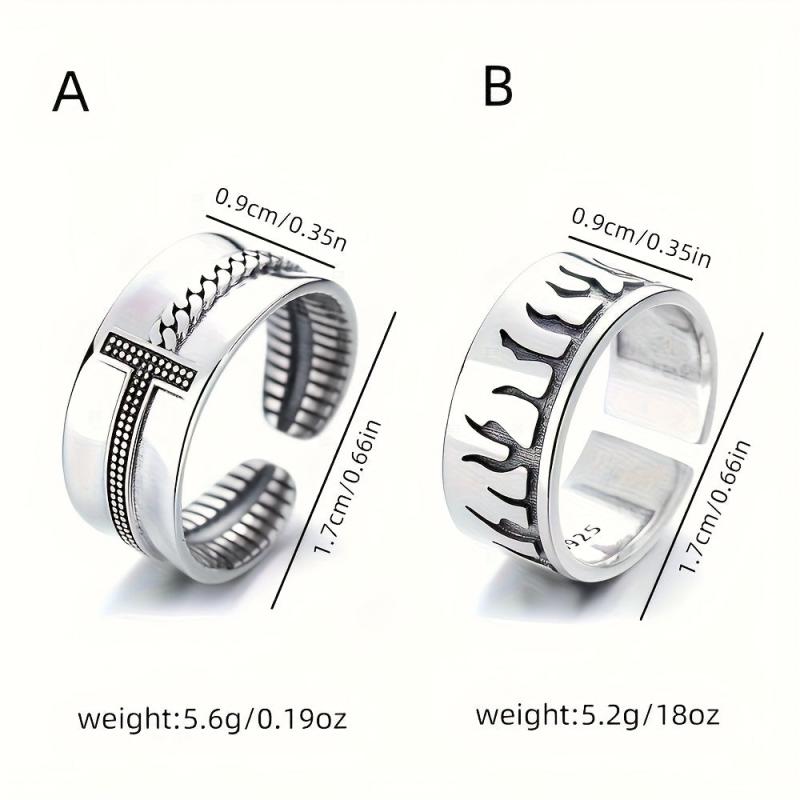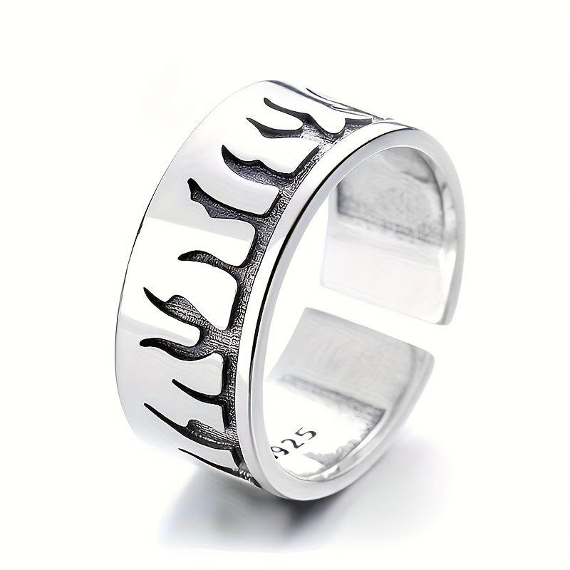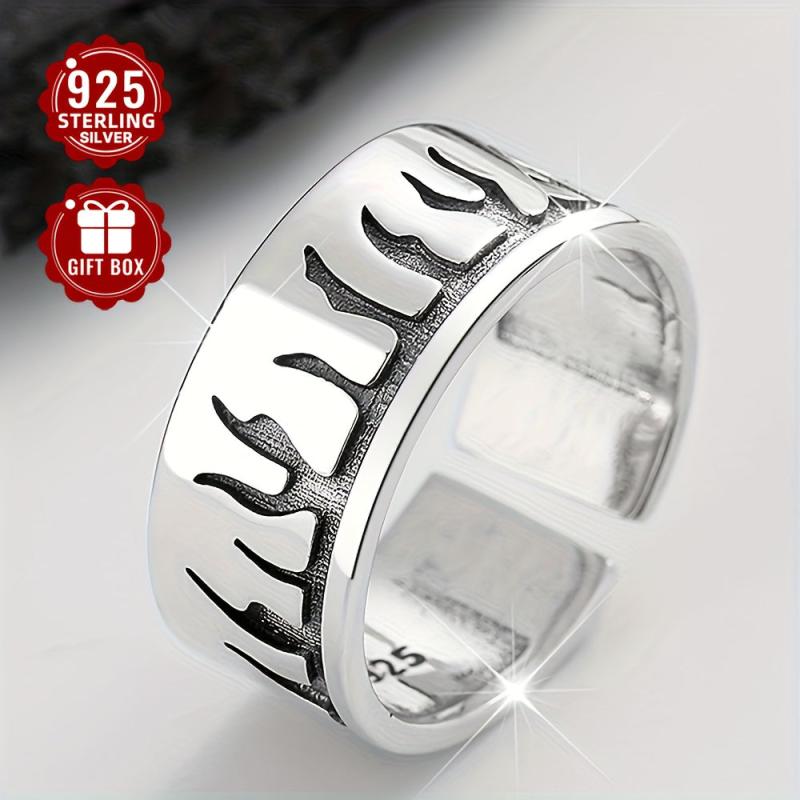 Add a touch of vintage flair to your look with this wide version T-shaped flame pattern ring. Made of pure S925 silver, this ring is perfect for both men and women who love a hip-hop style.