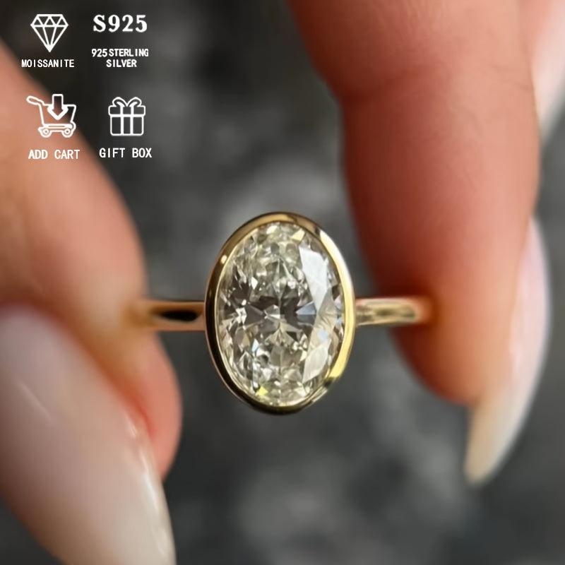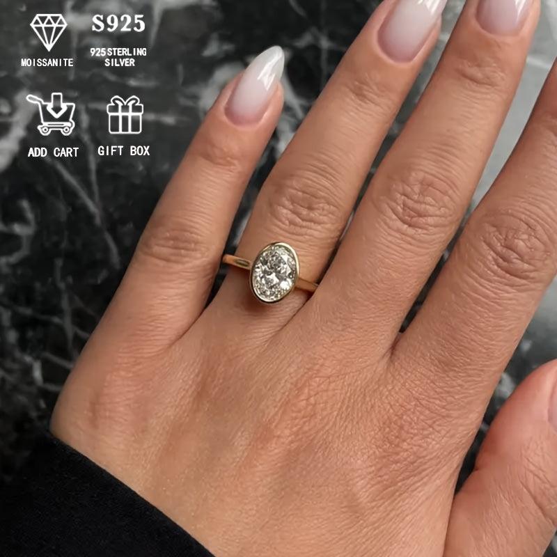 This stunning ring features a 2ct oval moissanite set in S925 silver, perfect for weddings and anniversaries.