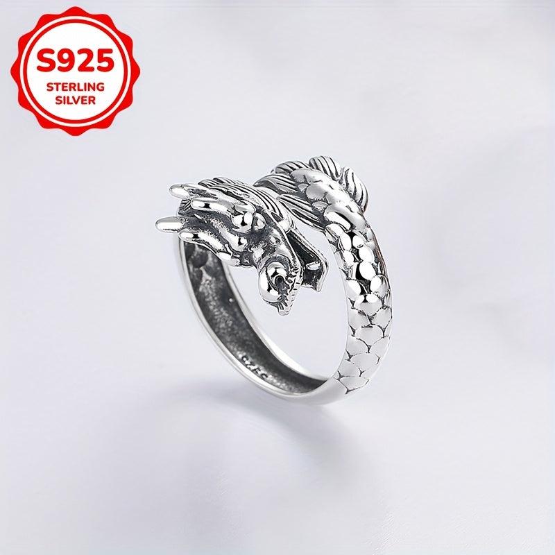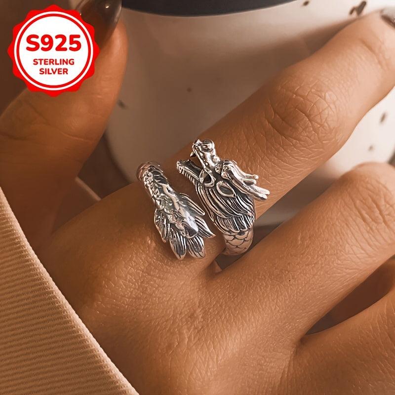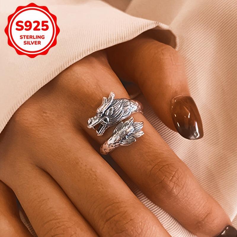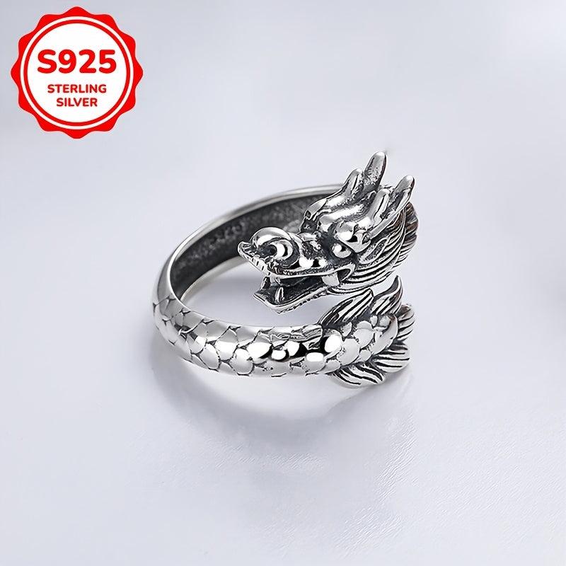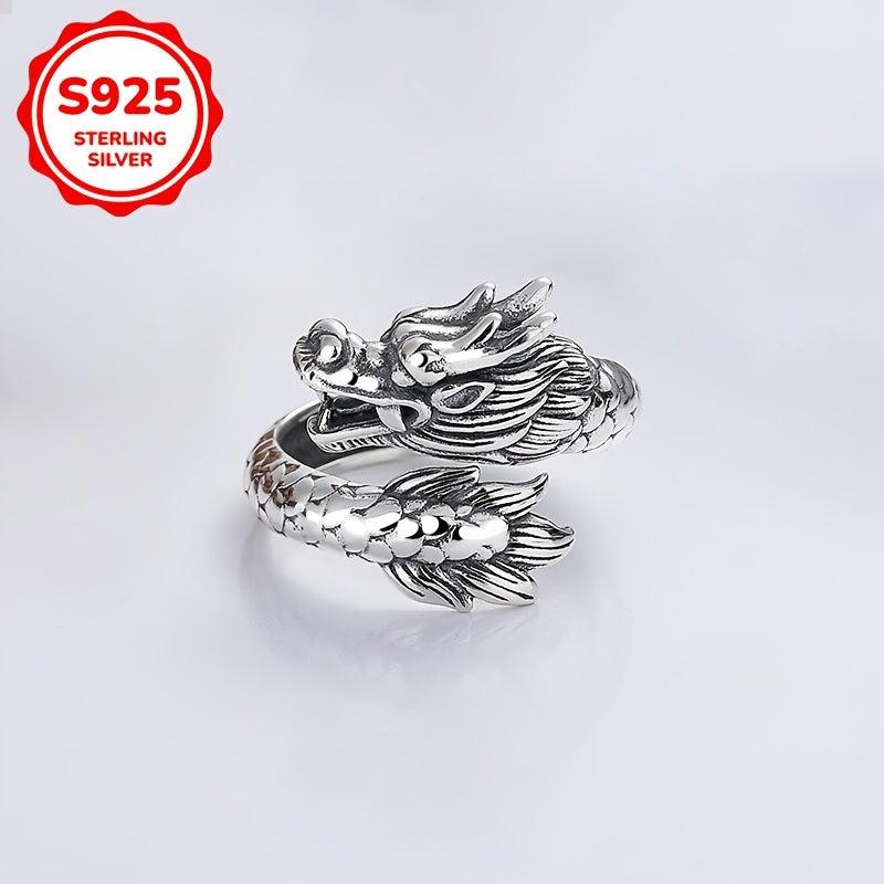 This S925 silver ring features a unique three-dimensional dragon design symbolizing good luck and strength. Its retro national style adds a touch of personality to your look, suitable for both men and women.