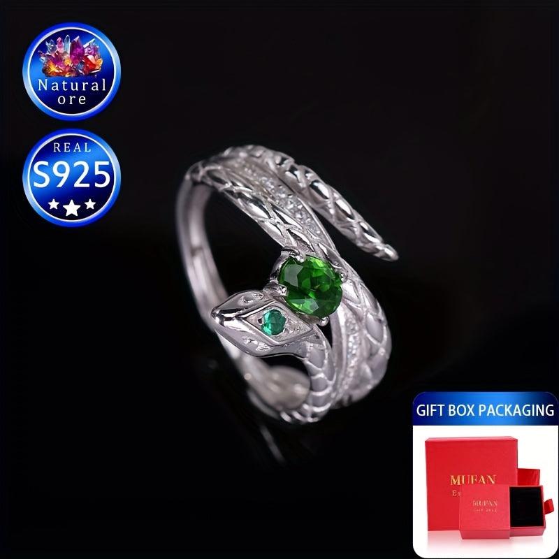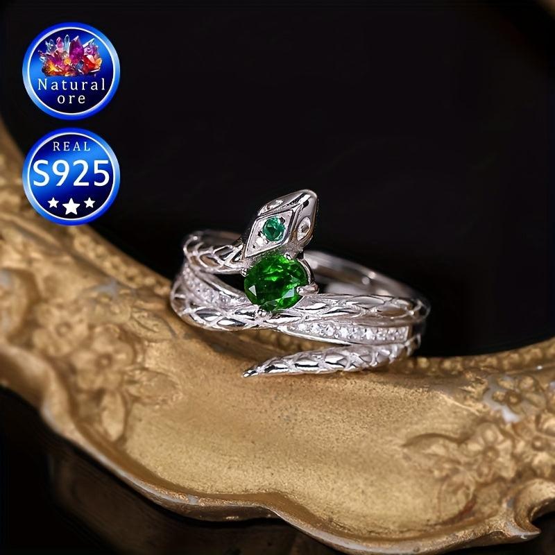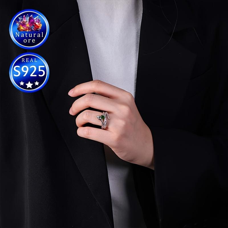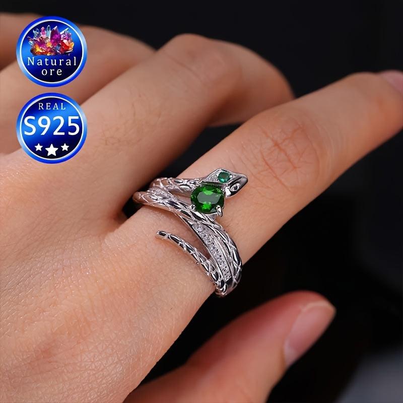 This stunning ring features a synthetic gemstone set in S925 silver. The green stone's shade may vary with a random pattern placement, adding unique charm to each piece. A perfect gift for her.