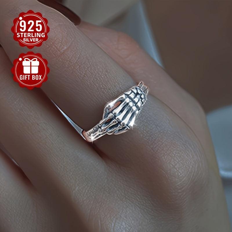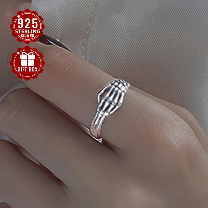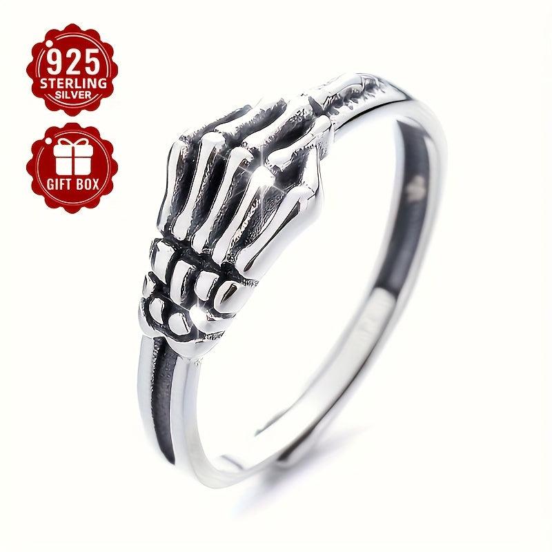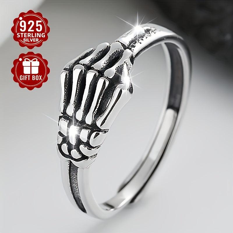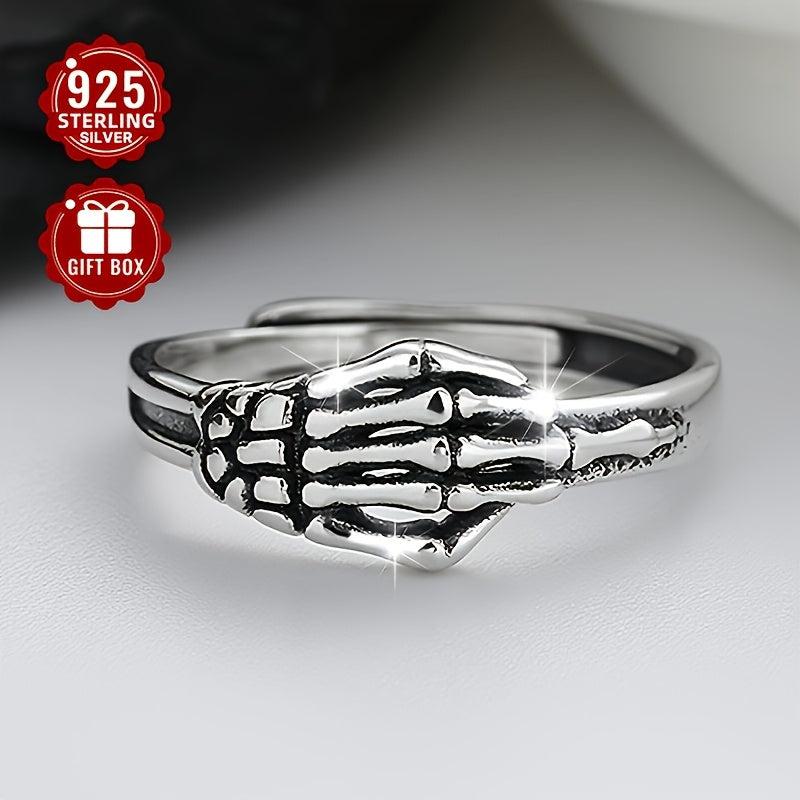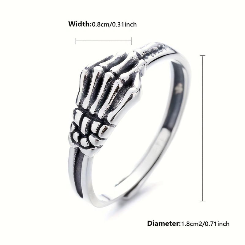 Stand out with our adjustable S925 silver band ring featuring a skull and demon hand design. Perfect for hip hop and rave styles.