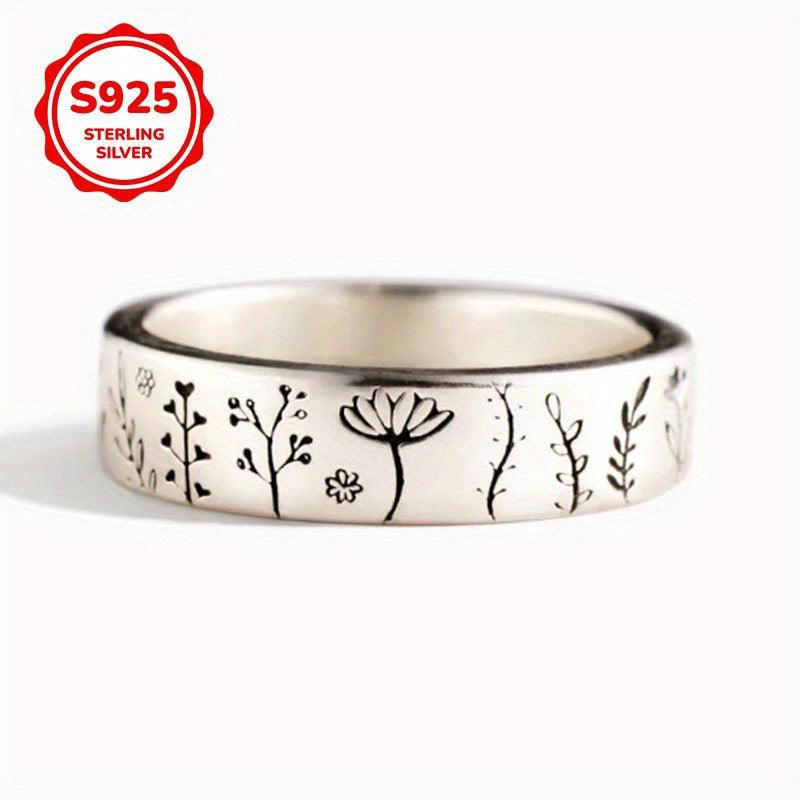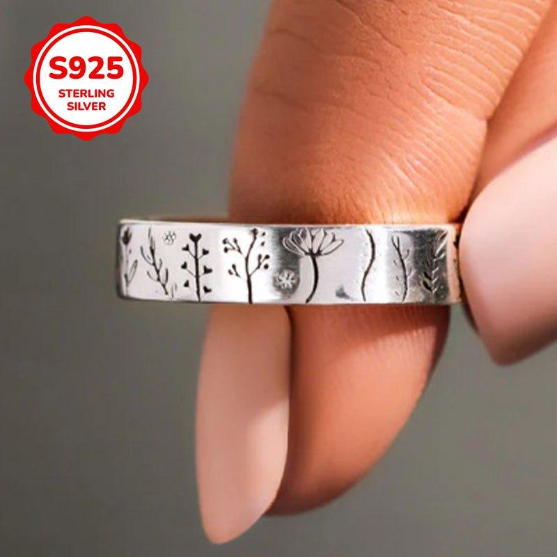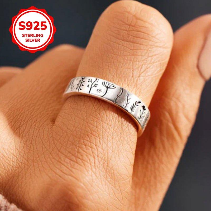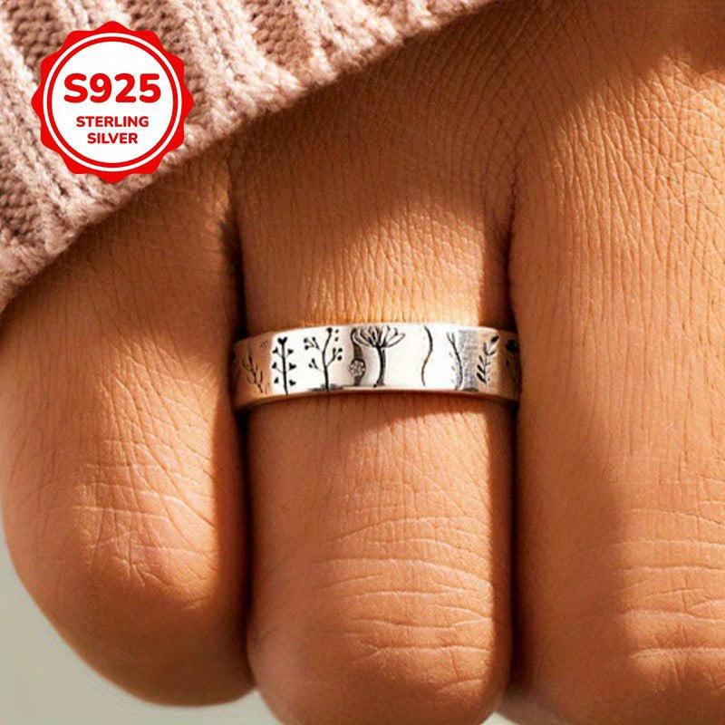 Elegant S925 pure silver ring featuring a beautiful flower and tree pattern. Ideal for daily wear, suitable for men and women.