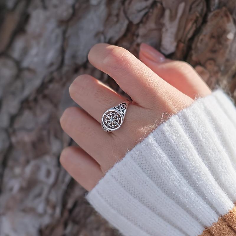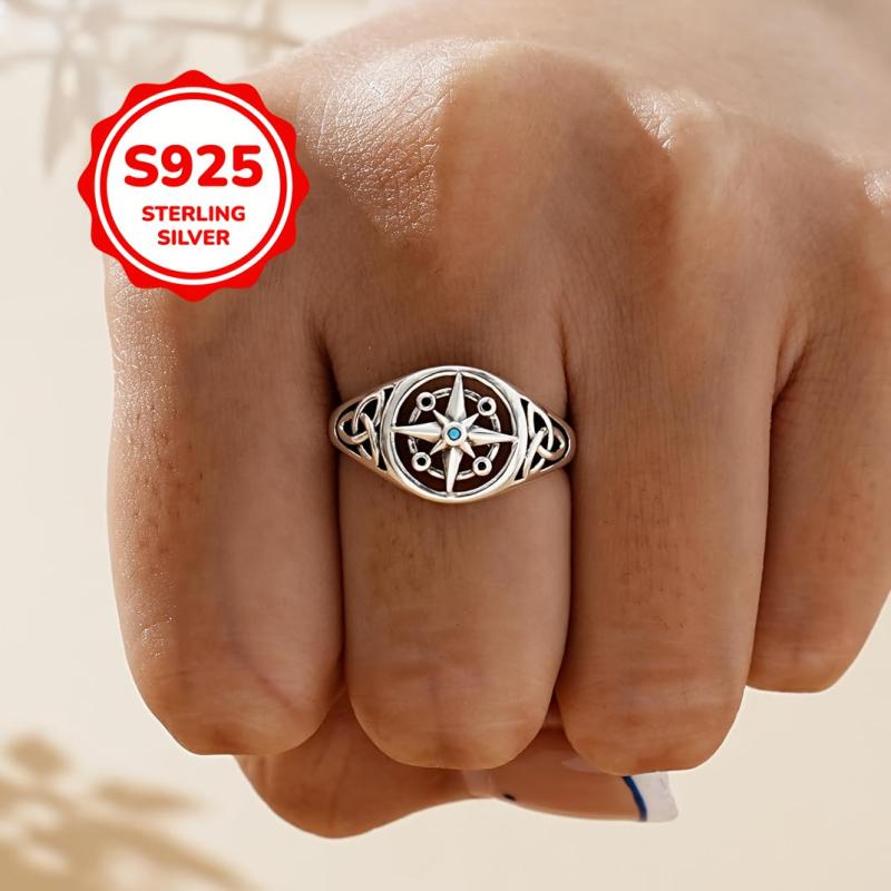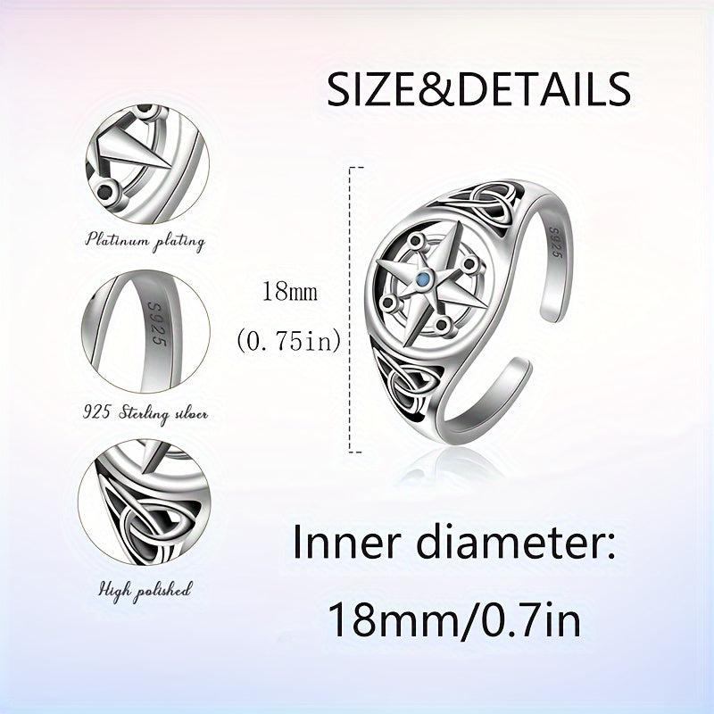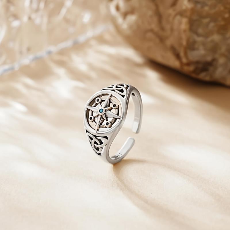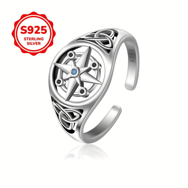 Stunning S925 silver compass-shaped open ring featuring artificial Zirconia inlay. Perfect for daily wear, this women's ring is hypoallergenic and elegant.