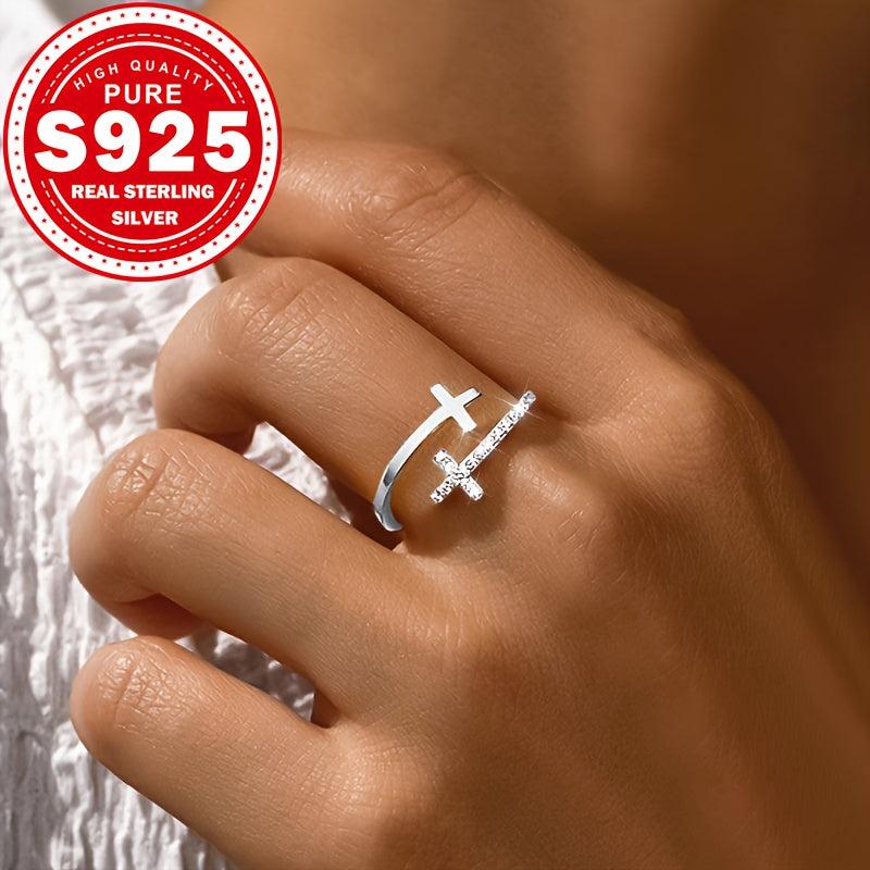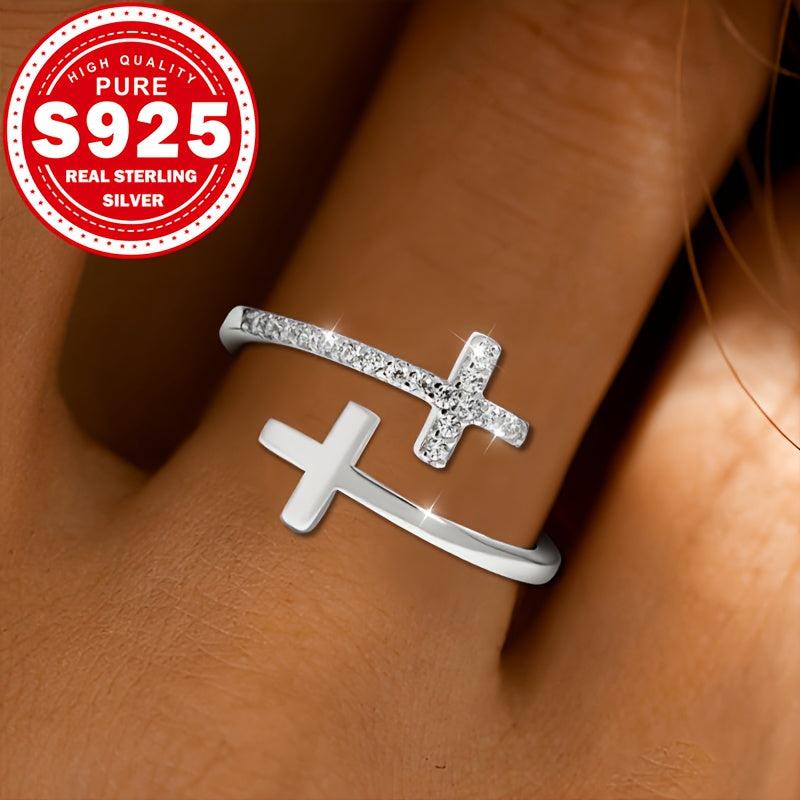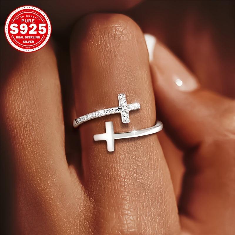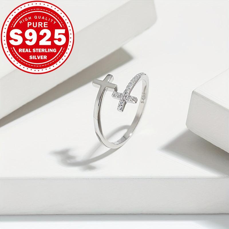 Add a touch of bohemian edginess to your look with this S925 silver cross ring featuring sparkling cubic zirconia. Perfect for daily wear or parties, this versatile piece is a great Thanksgiving or Christmas gift idea.