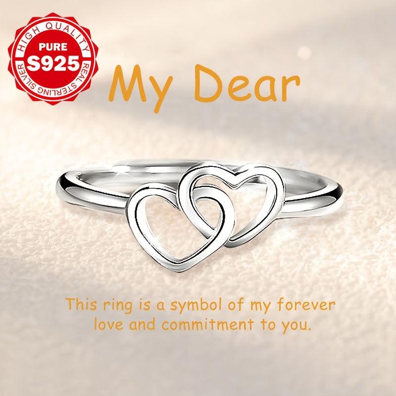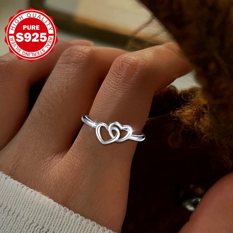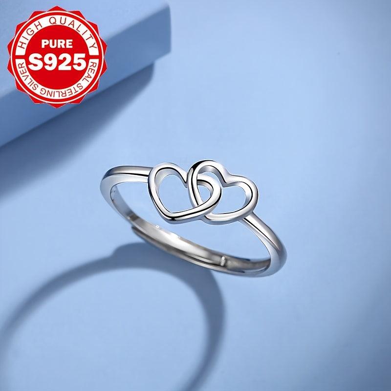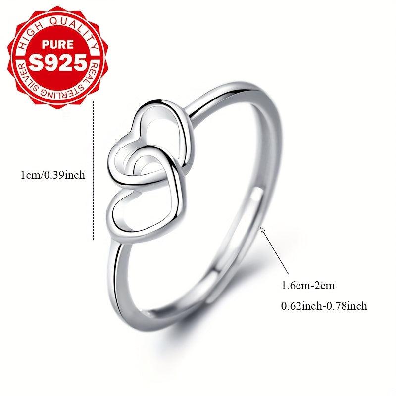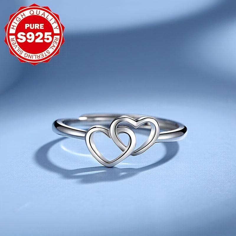 Stunning S925 silver ring featuring double heart design with synthetic zirconia, perfect for engagement or wedding. Low allergy and high-quality craftsmanship.