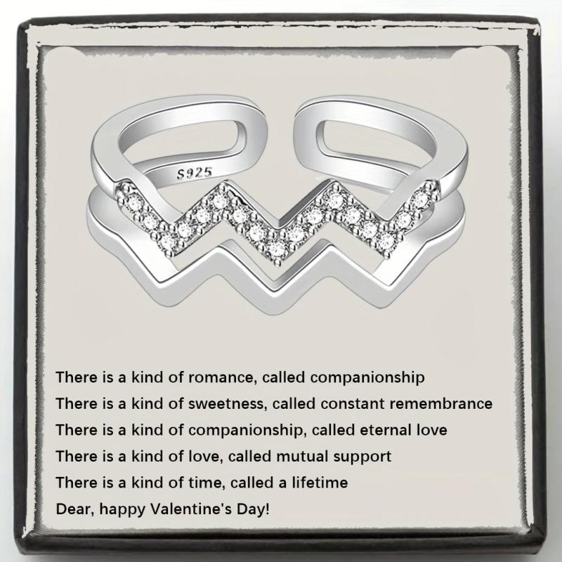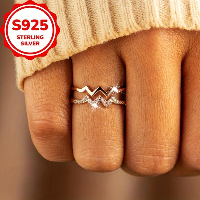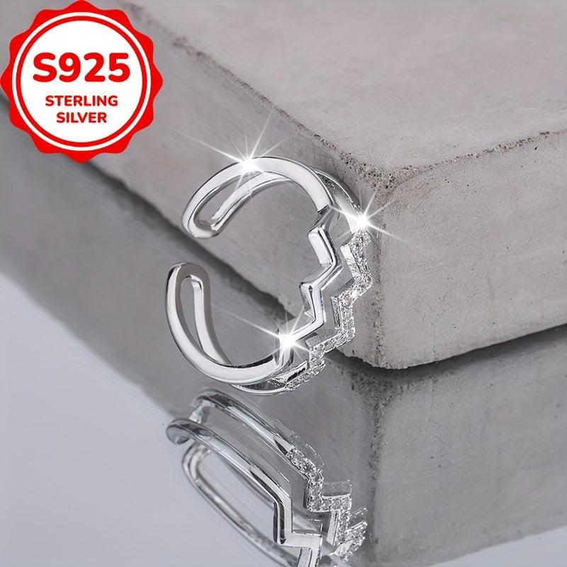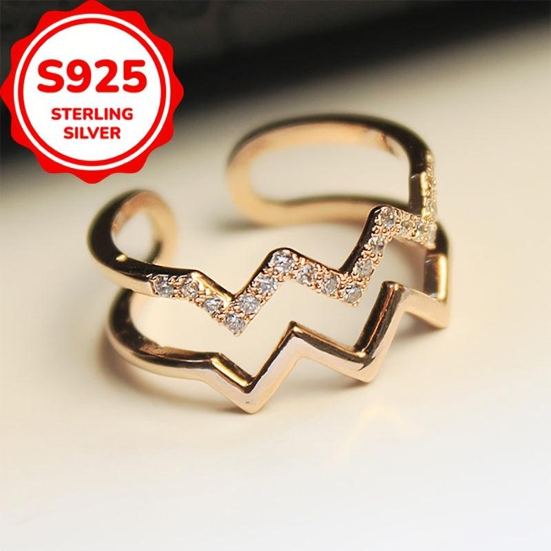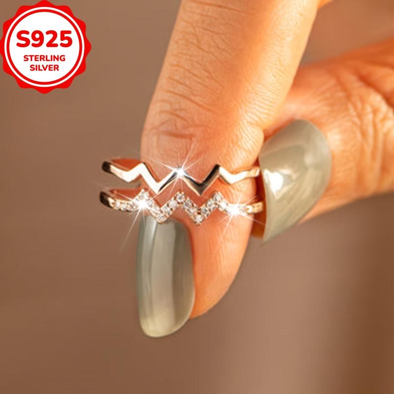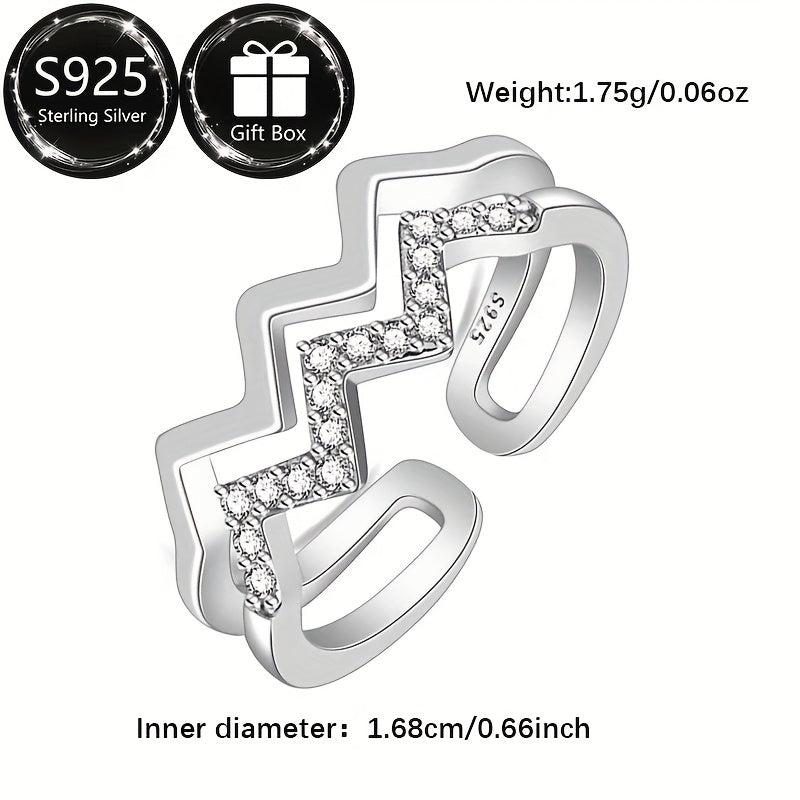 This S925 Silver Double Wave Ring is low allergy, perfect for daily wear or special occasions. It features a curved design and an adjustable opening, suitable for all finger sizes.
