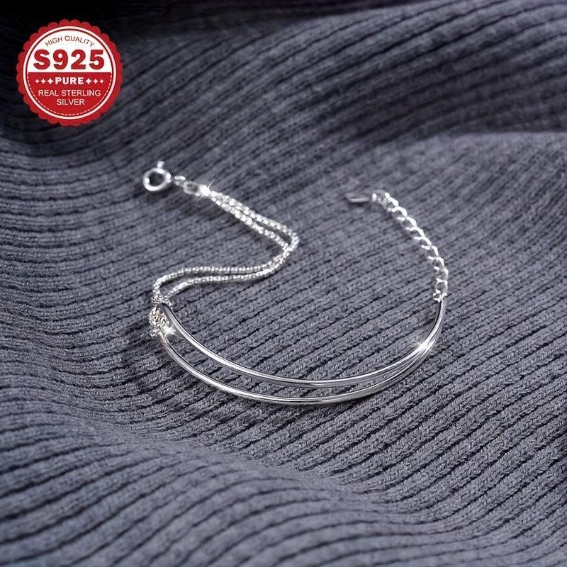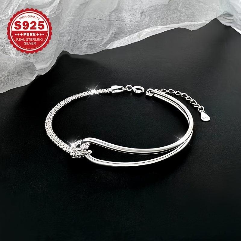 Elegant and versatile, this S925 pure silver bracelet features a charming geometric patchwork design. It is hypoallergenic and perfect for daily wear.