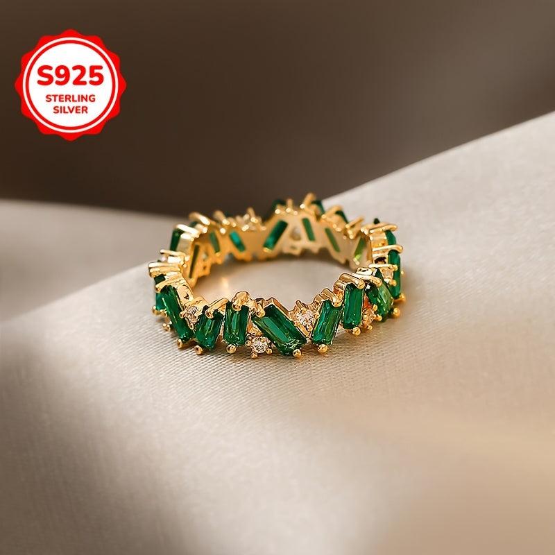 This exquisite ring features a sparkling irregular green synthetic zirconia, making it perfect for parties or as a gift for Valentine's Day or birthdays.