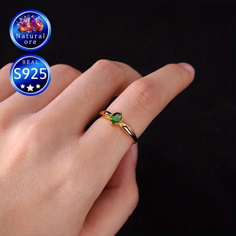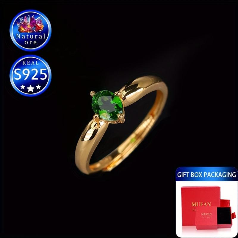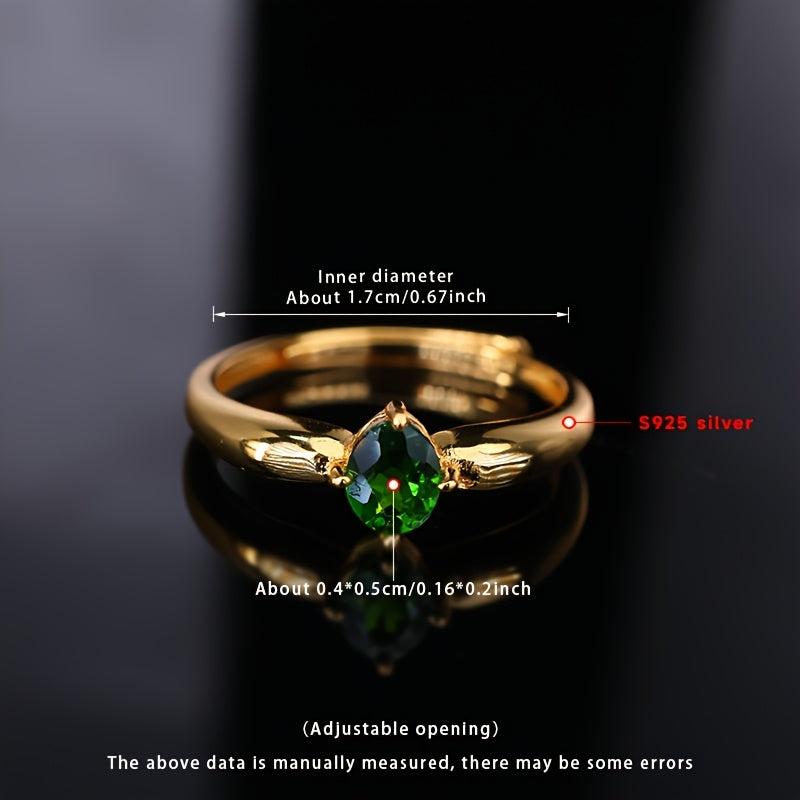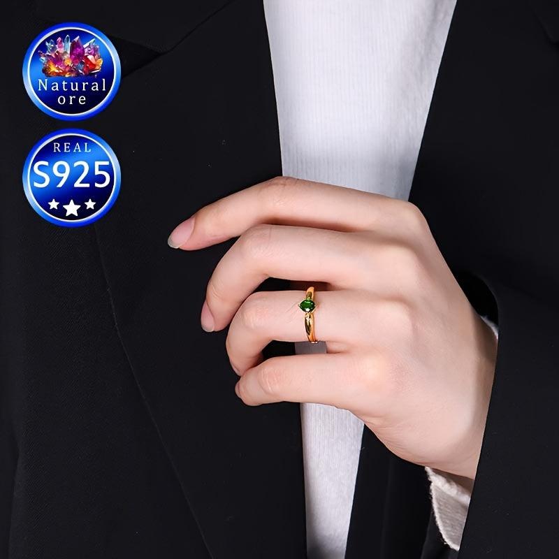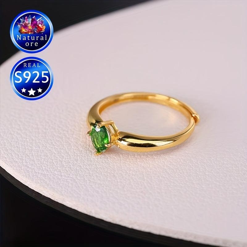 This gorgeous ring features a green translucent stone set in S925 silver. The adjustable open design makes it a perfect gift. Please note that natural mineral variations may occur, and pattern placement is random.