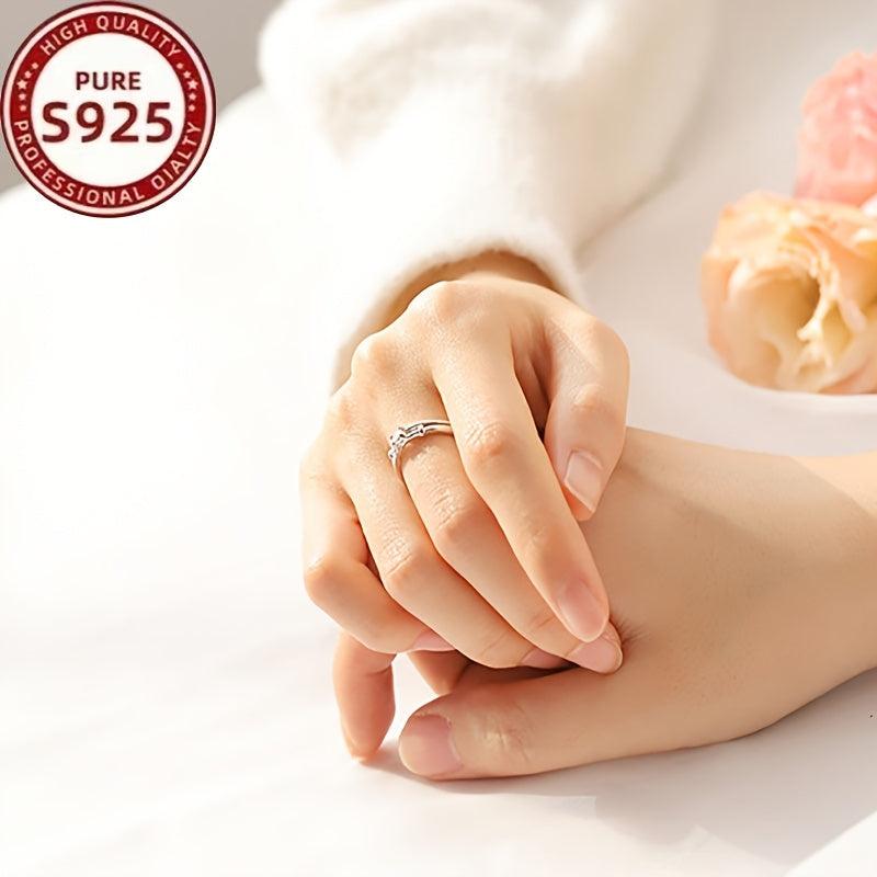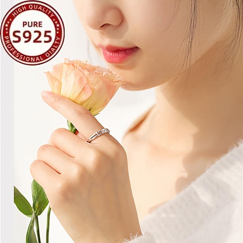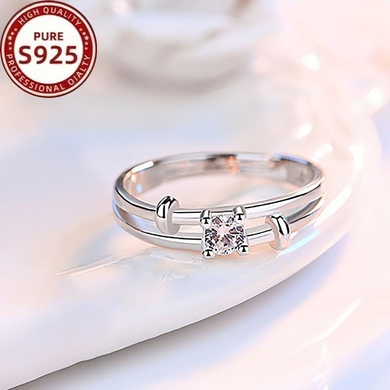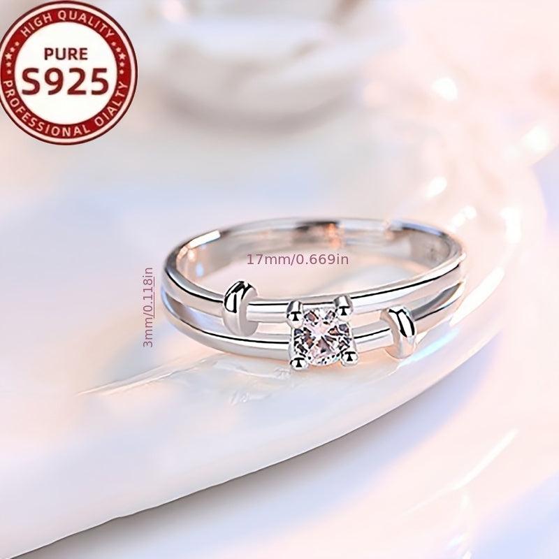 This elegant ring features a moonstone decoration and is made of pure silver plated with synthetic zirconia, perfect for those with allergies to other metals.