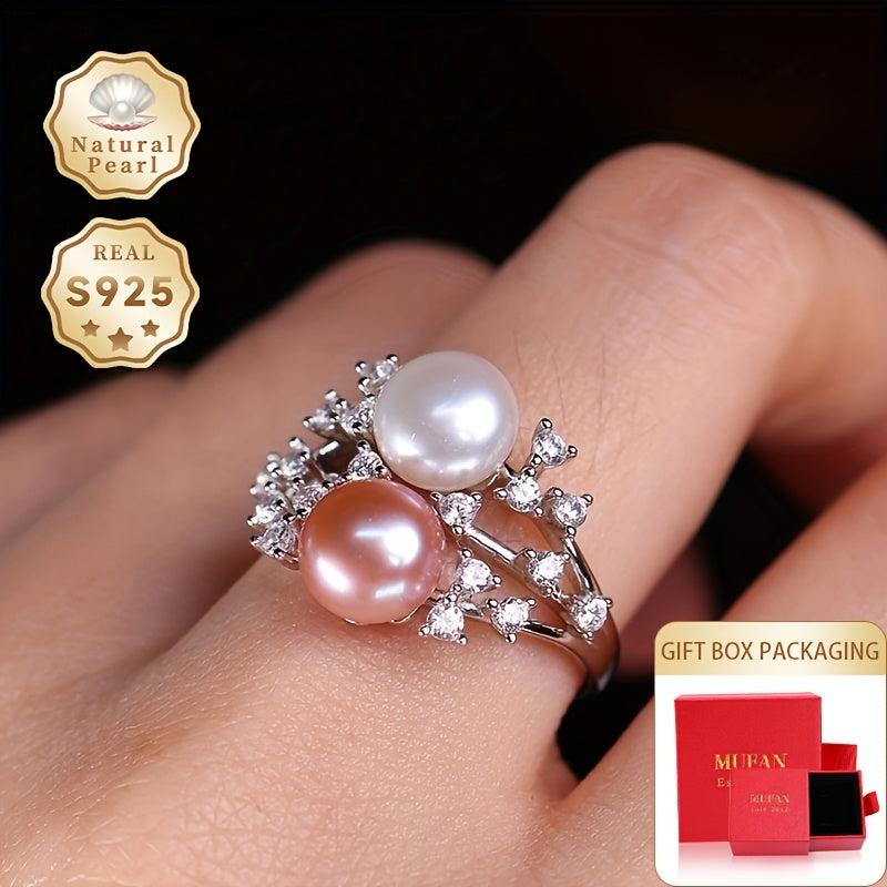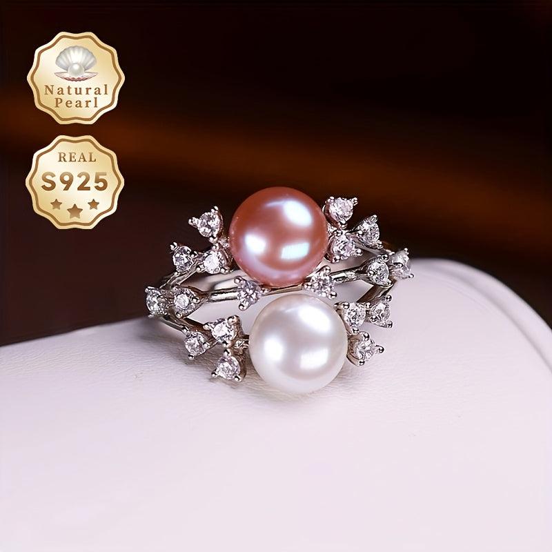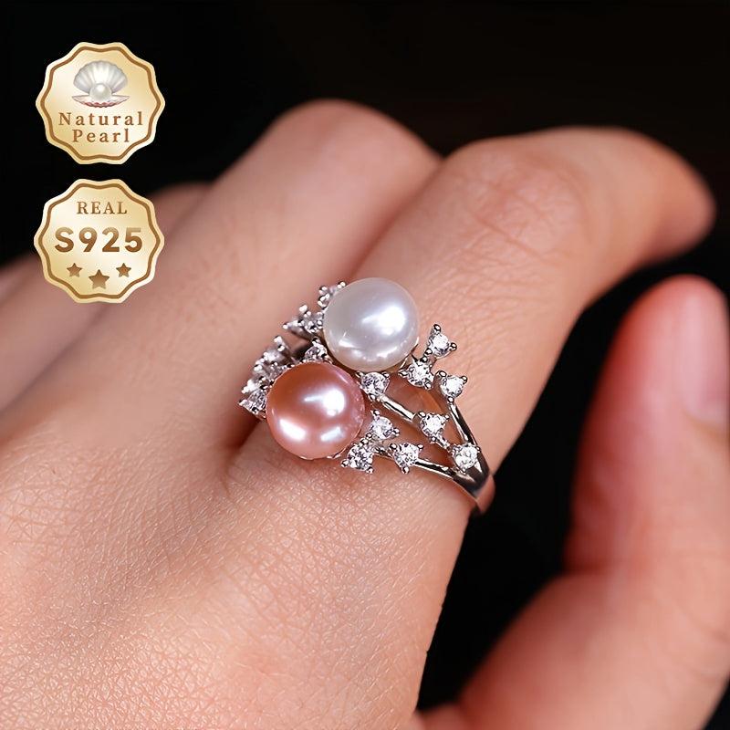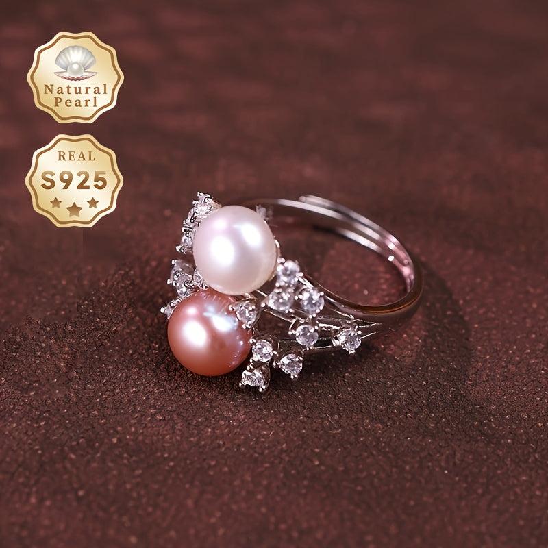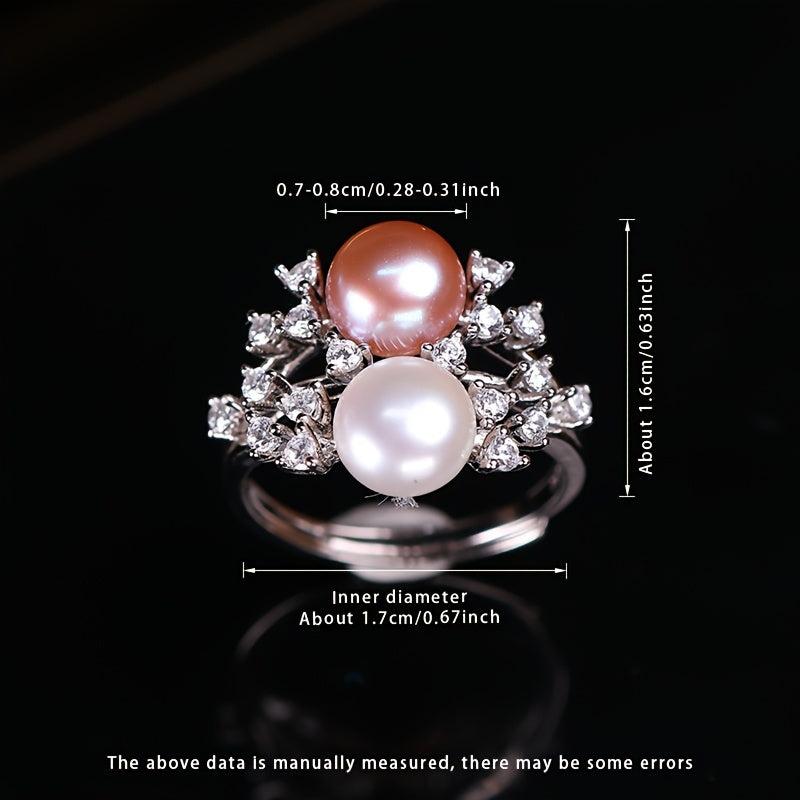 Elegant and stylish S925 silver ring with a 7-8mm two tone natural freshwater pearl. Features an adjustable open design for a perfect fit.