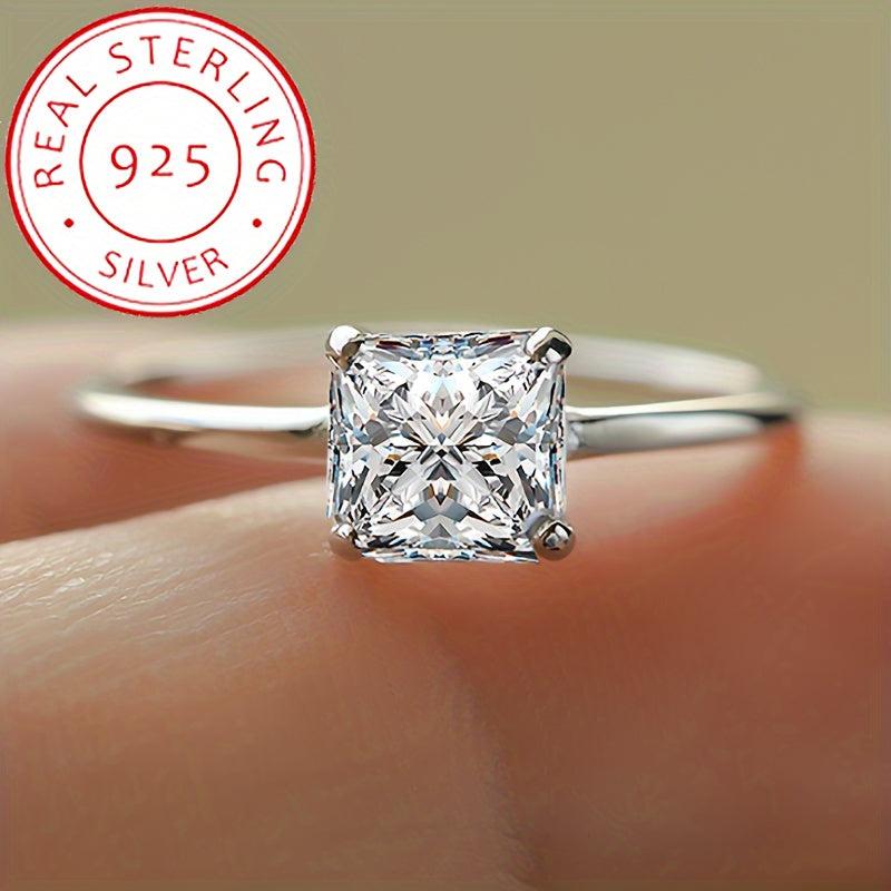 Elegant and timeless, this ring features a classic four-prong setting with a stunning princess-cut cubic zirconia stone. It is the perfect choice for those seeking a sophisticated and stylish engagement ring.