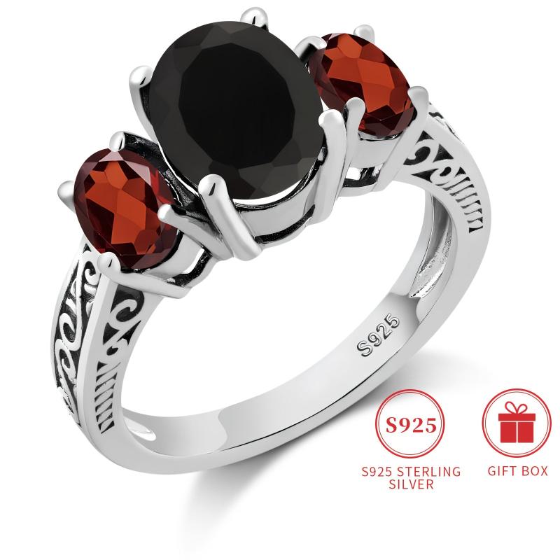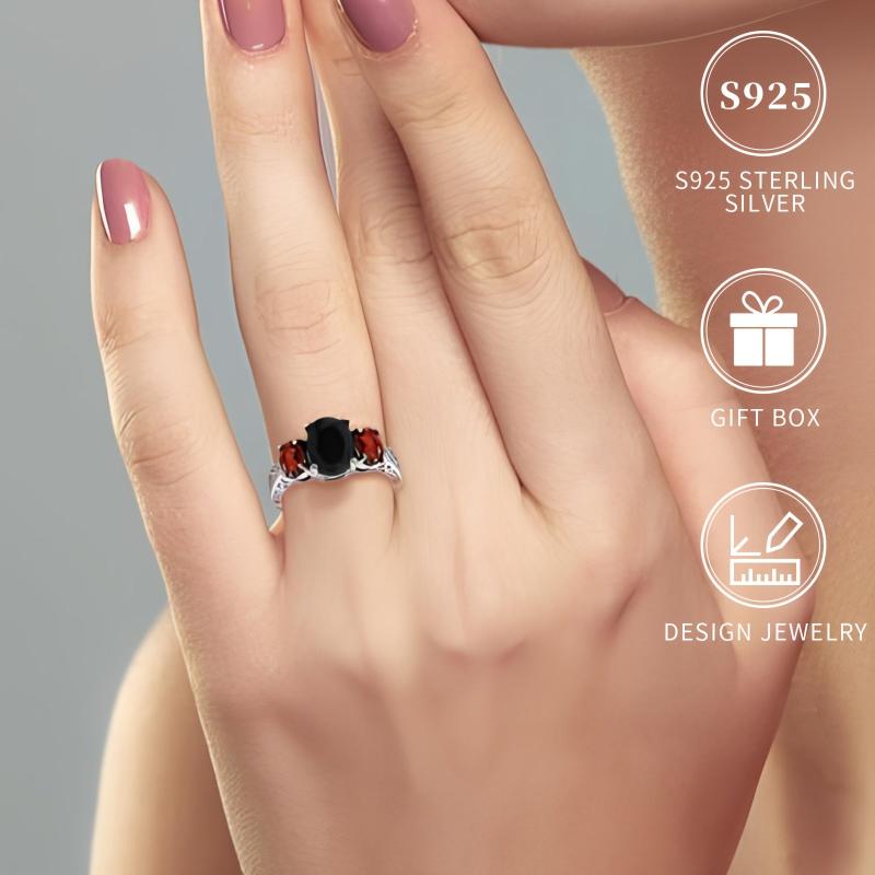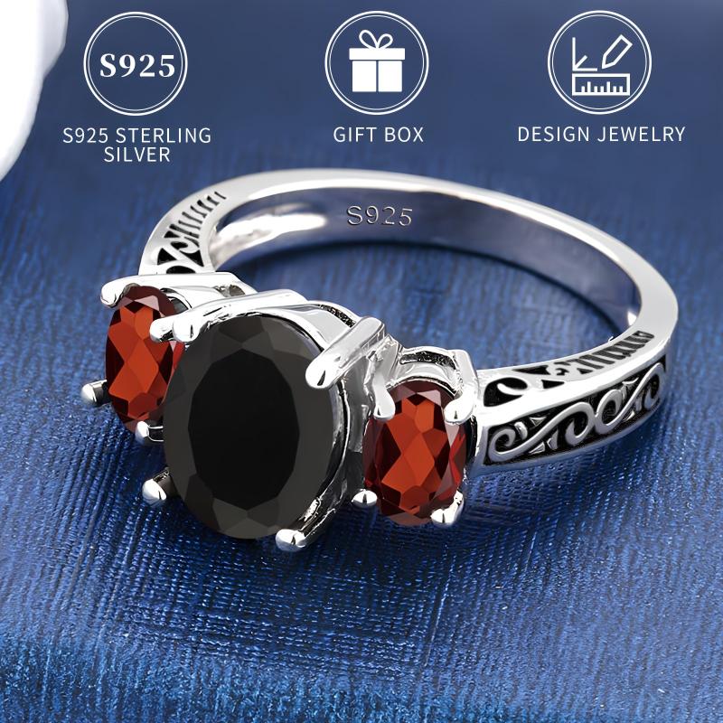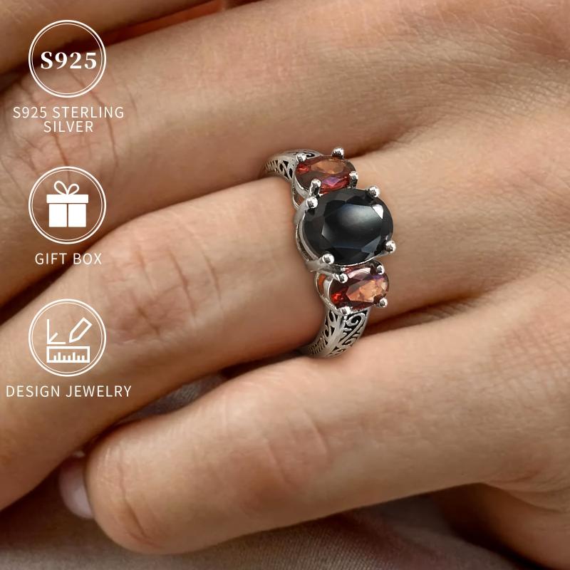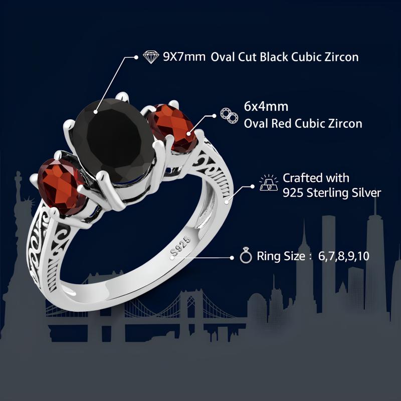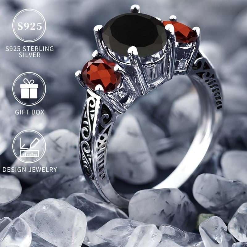 Elegant S925 pure silver ring set featuring red synthetic zirconia, perfect for weddings, parties, and gifts. Nickel-free for low allergy risk.
