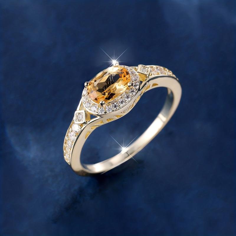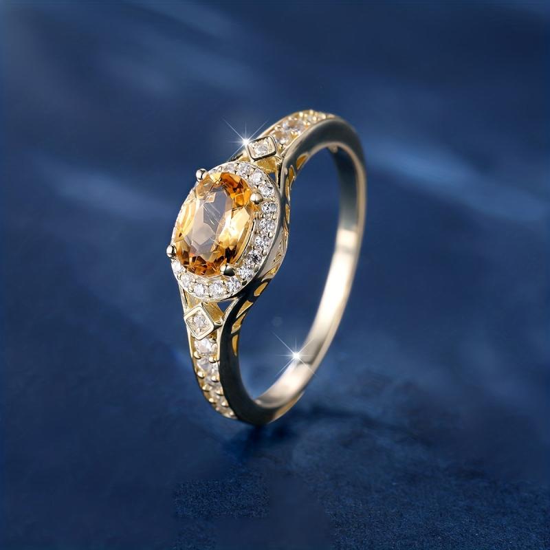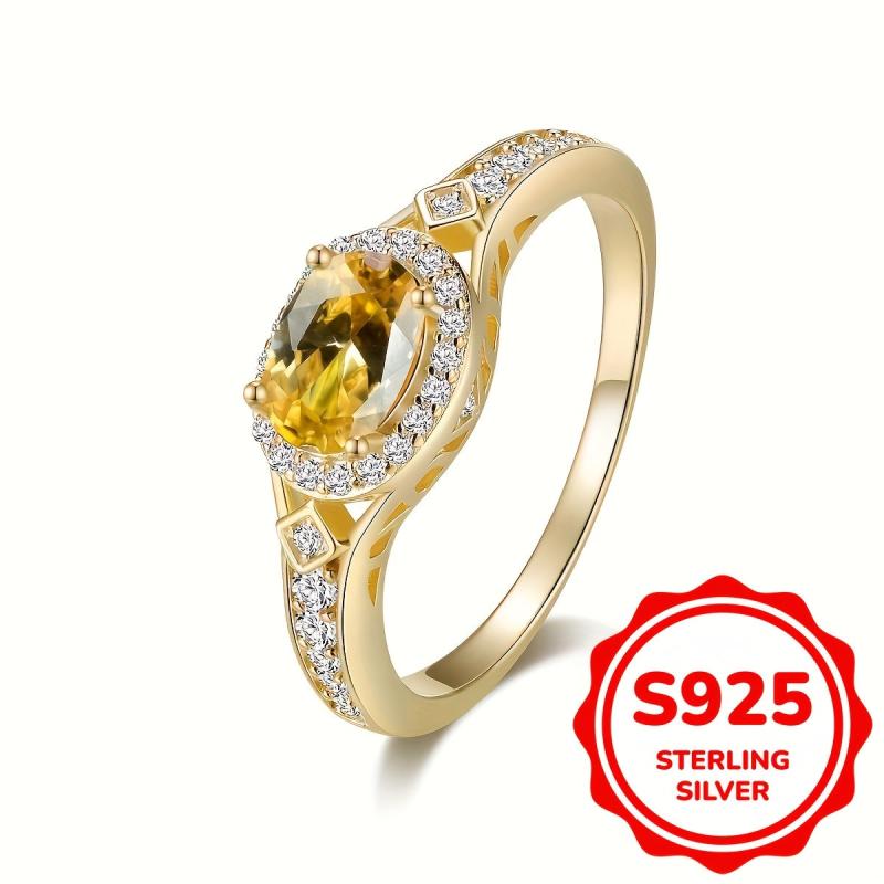 This stunning S925 sterling silver ring features 3g yellow cubic zirconia sparkling accents, making it perfect for weddings and engagements. The high-quality synthetic gemstone adds a touch of elegance to any occasion.