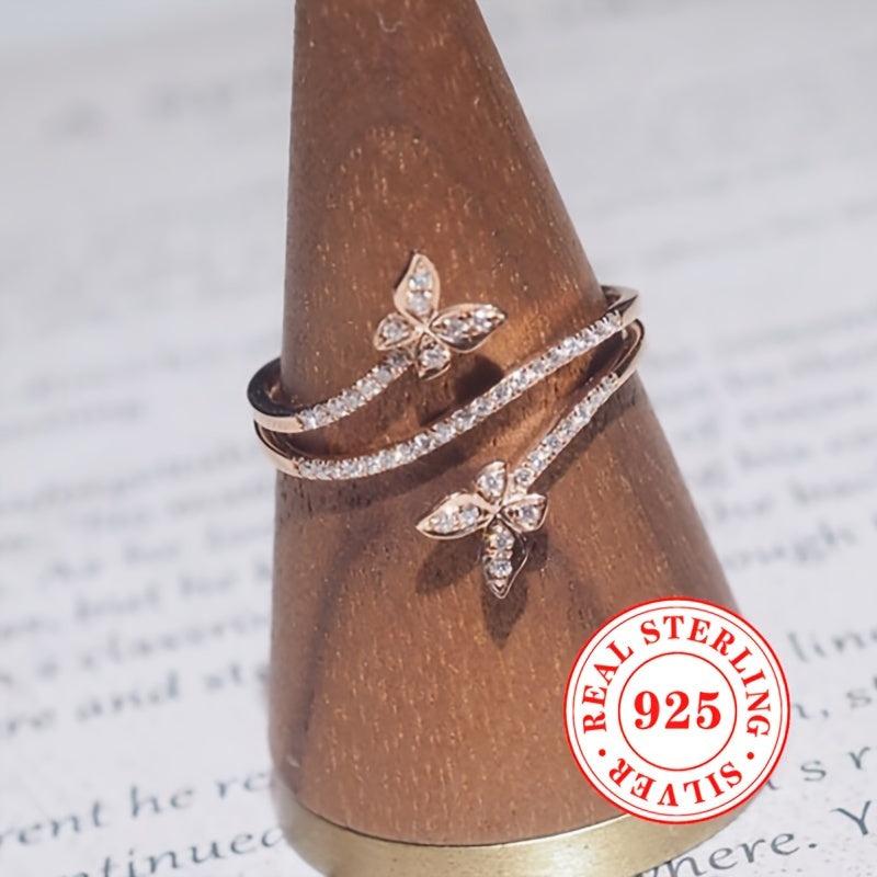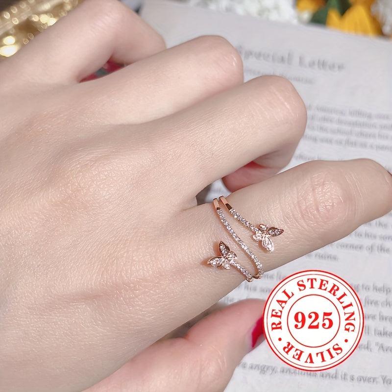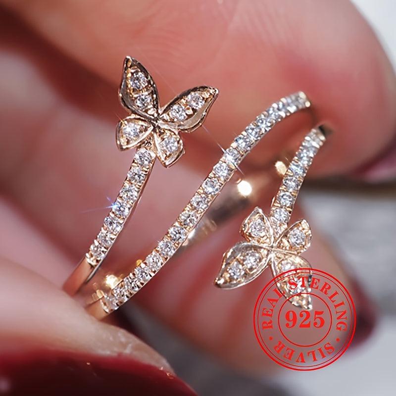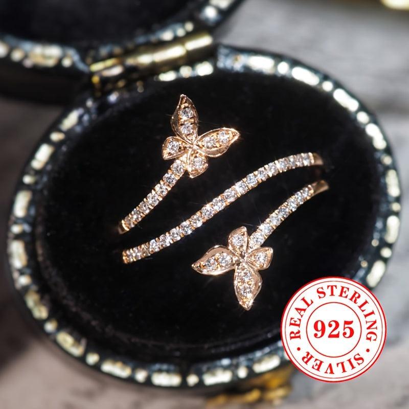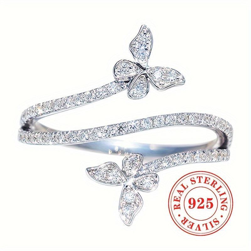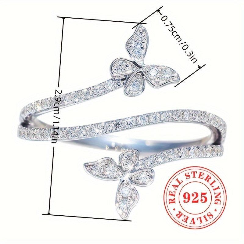 Elegant women's ring crafted from 3g of pure S925 silver featuring sparkling zirconia inlaid double butterflies. Perfect for daily wear and leisure.
