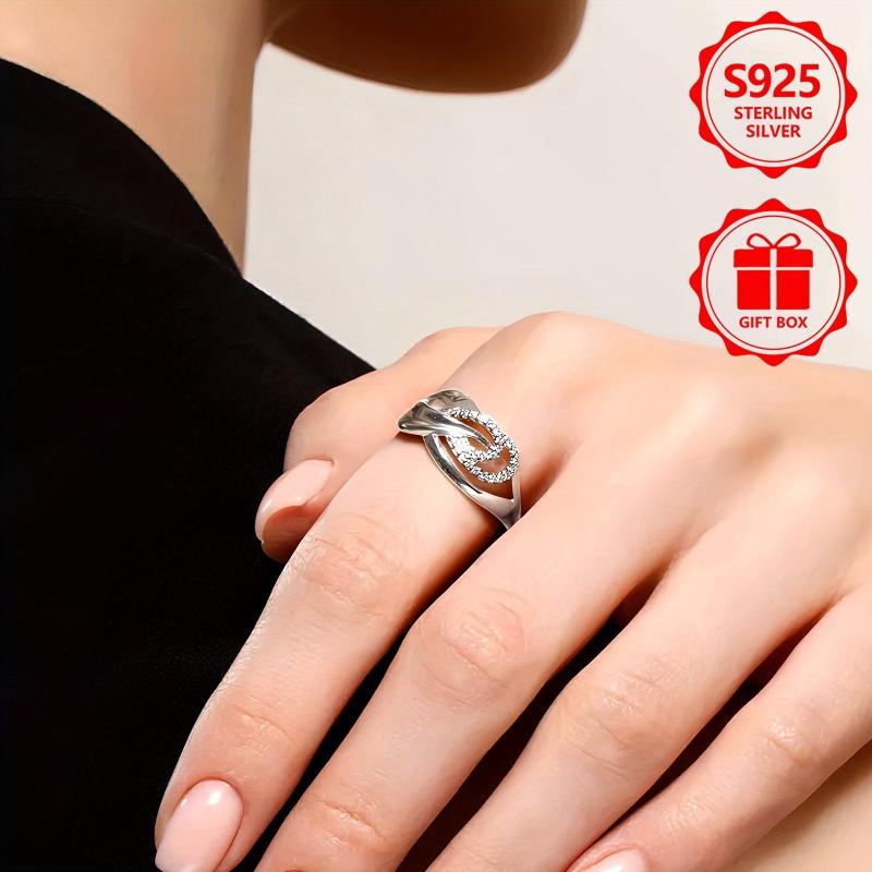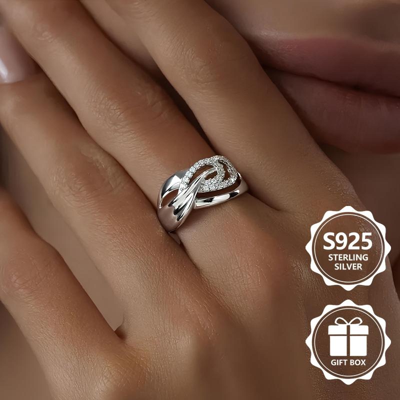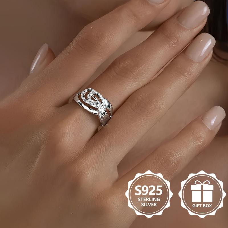 Elegant and romantic S925 silver ring featuring multiple layers of synthetic zirconia, perfect for evening wear or special anniversaries.