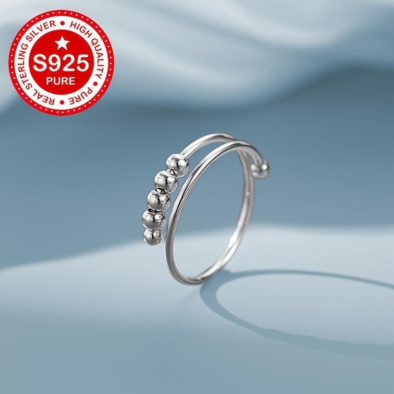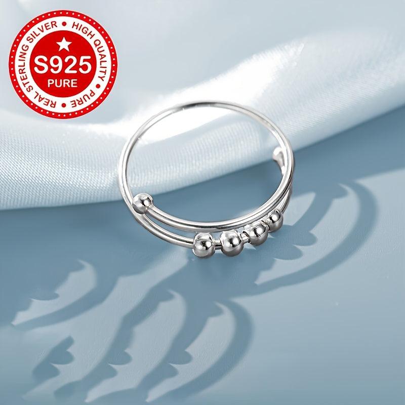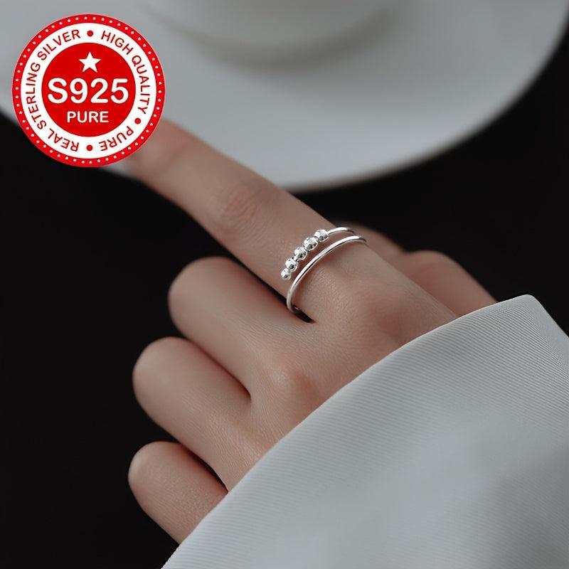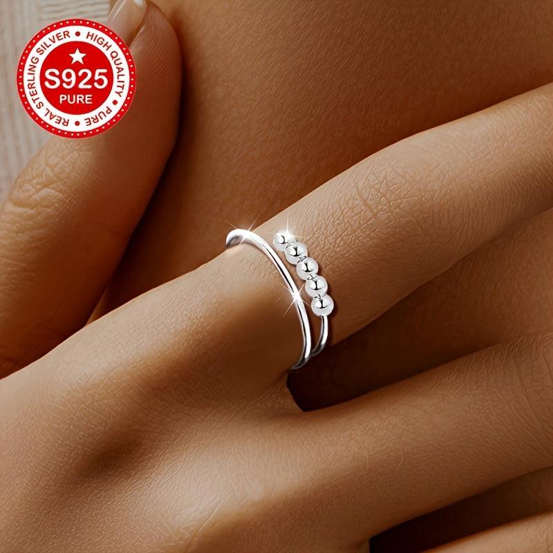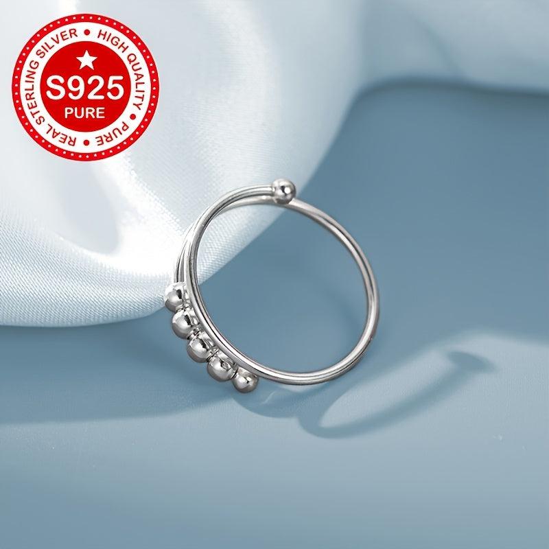 This double layered swivel bead ring is made of high-quality S925 silver with a minimalist design. It is suitable for various occasions and is hypoallergenic, making it a perfect gift for women.