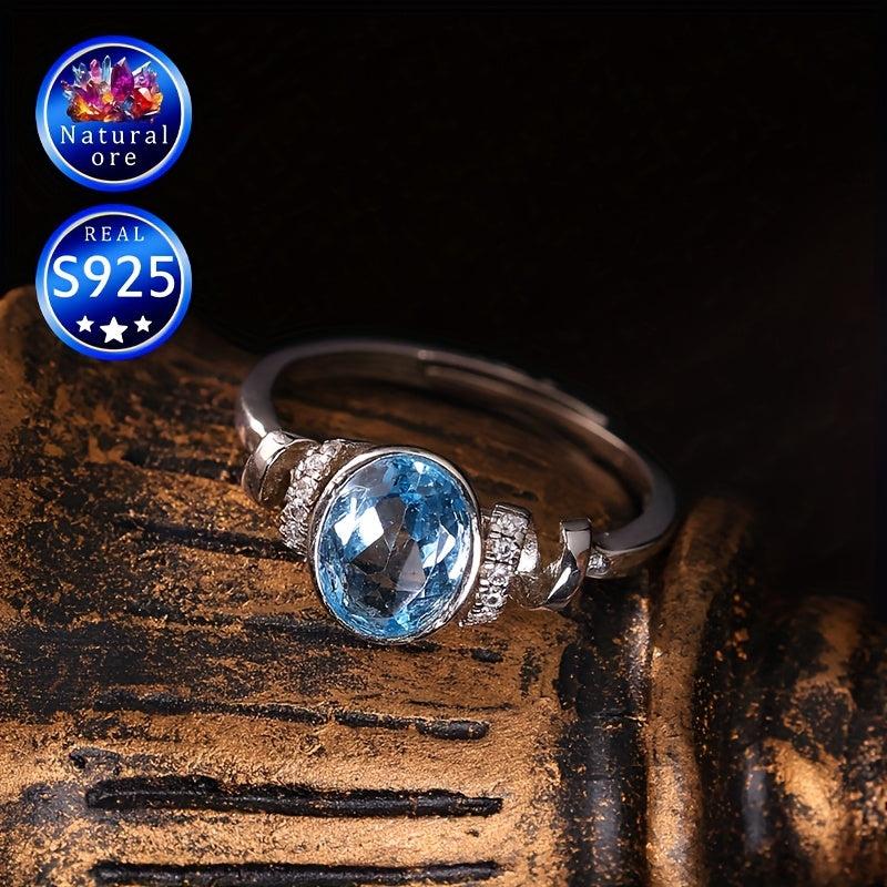 This one gemstone ring features a topaz stone set in S925 silver, with an adjustable opening ribbon design. Perfect for daily wear or as a wedding accessory or souvenir.