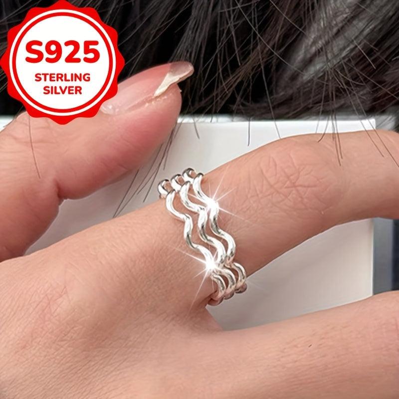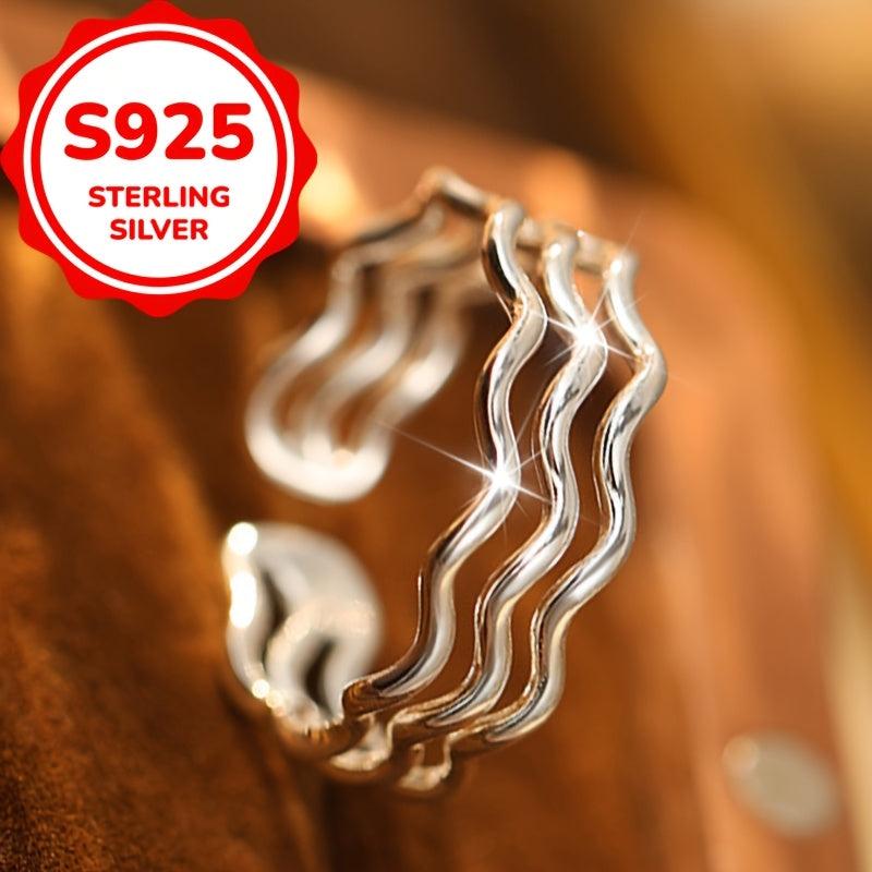 Upgrade your style with this elegant S925 silver layer wave ring. Perfect for daily wear, parties, and special occasions. Its adjustable design ensures a comfortable fit.