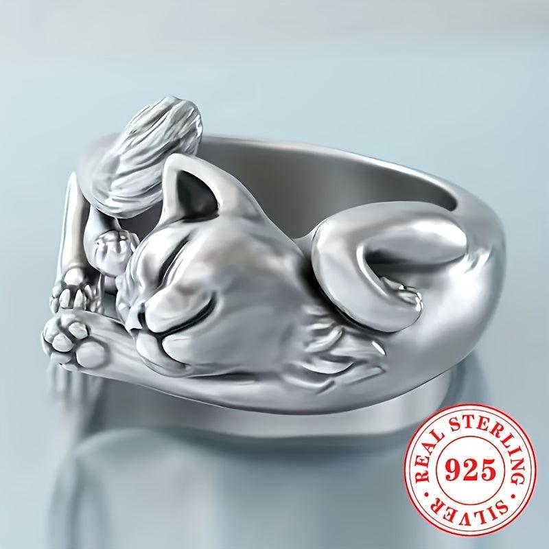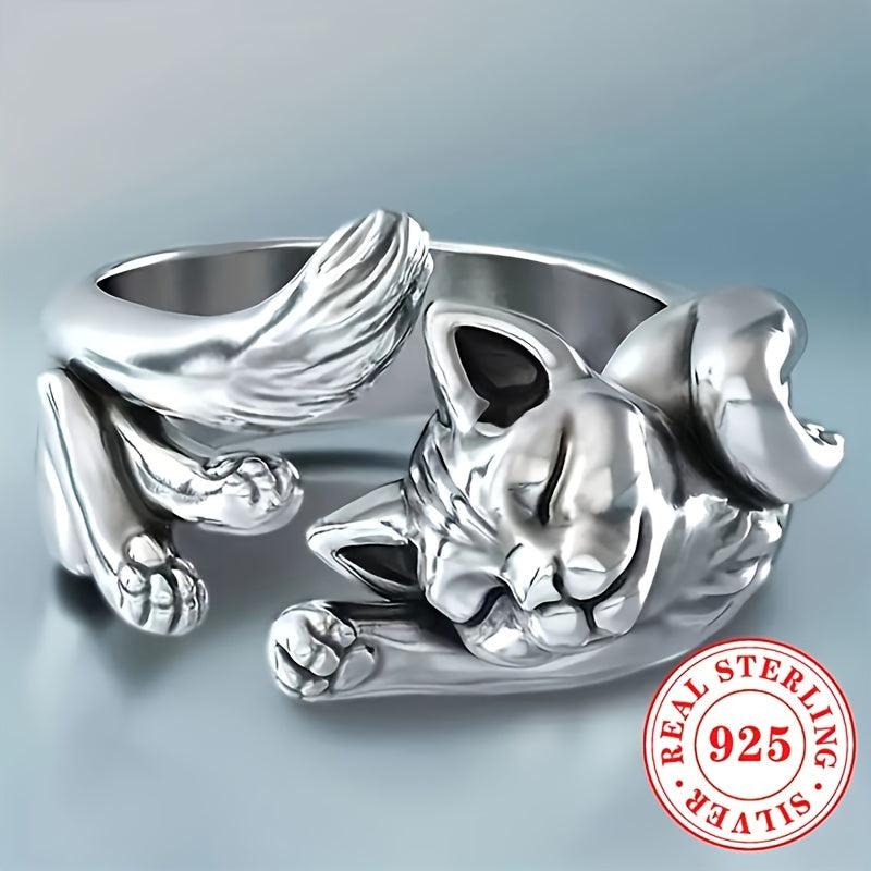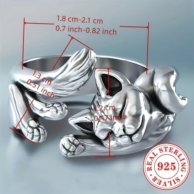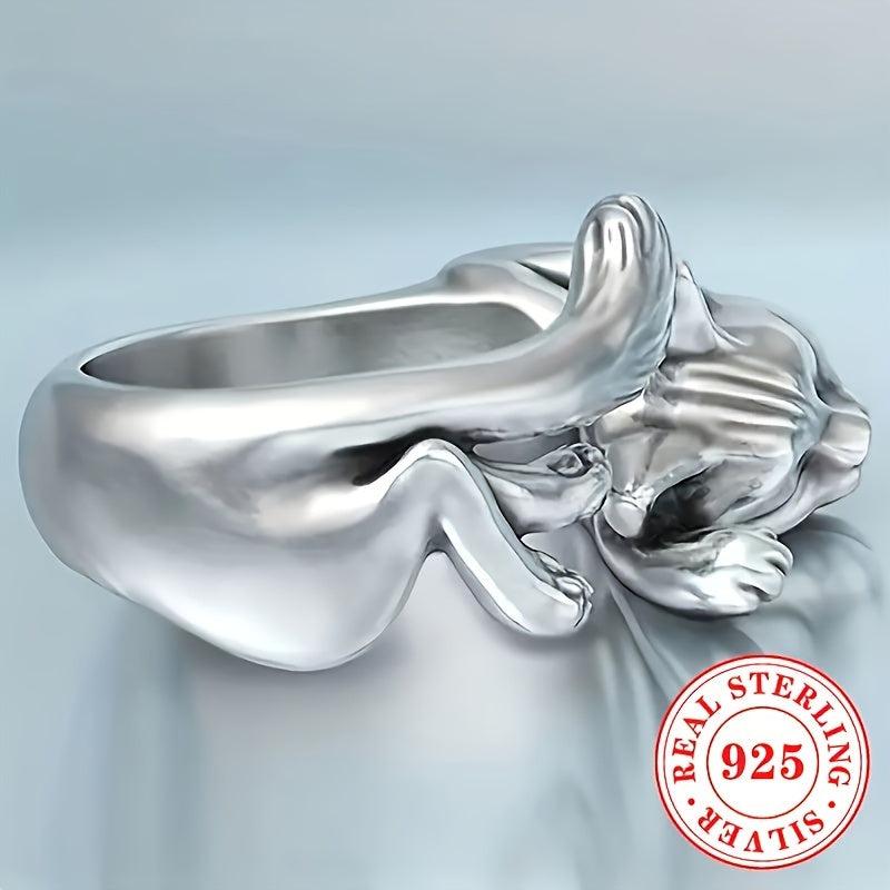 This S925 pure silvery cat ring is perfect for your Halloween party outfit. It features an openable design and is adjustable to fit your finger size.