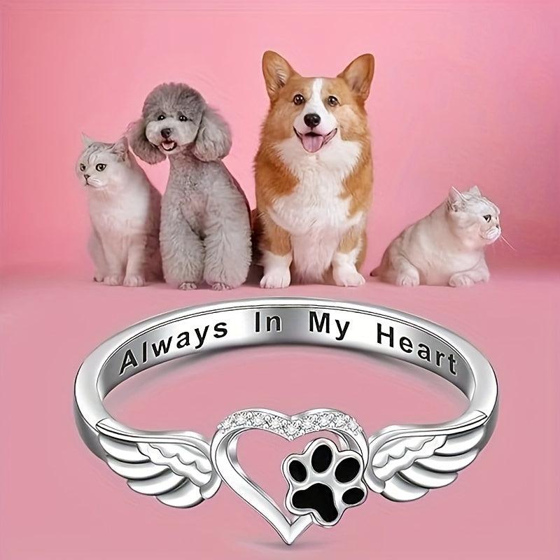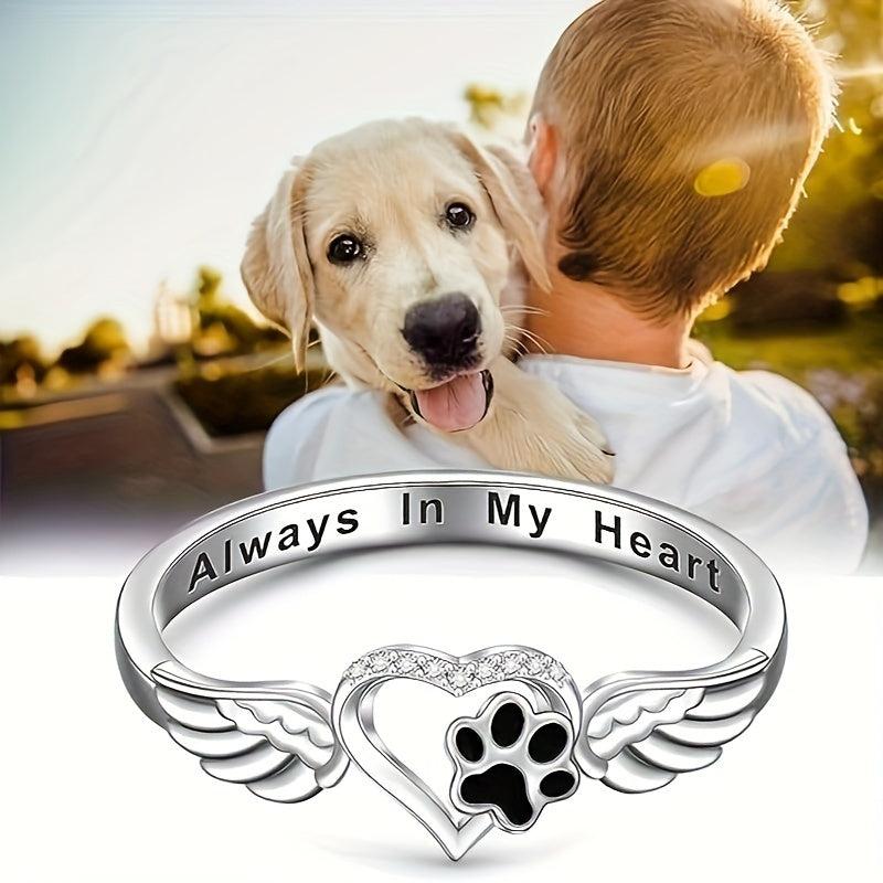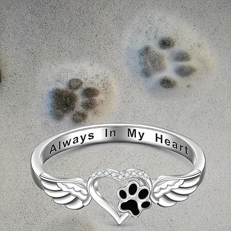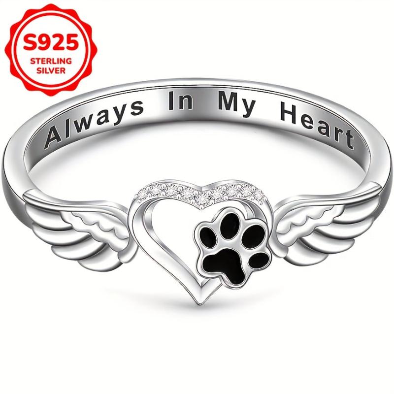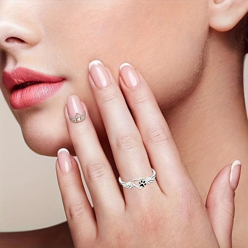 This beautiful ring features footprints and wings design, perfect for pet lovers. Crafted from sterling silver (S925), it showcases your love for animals.