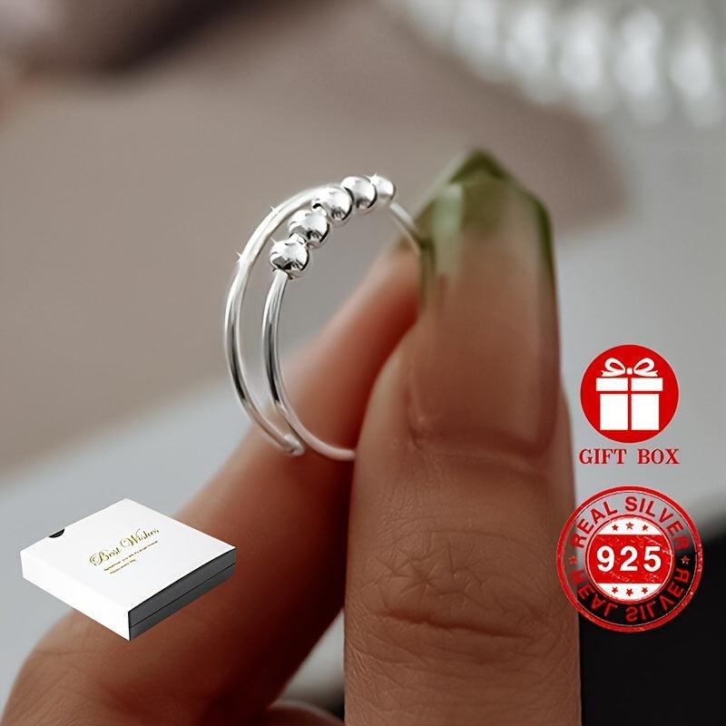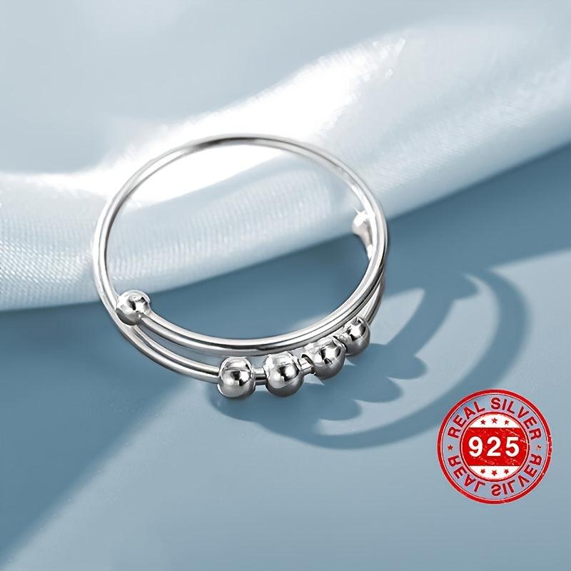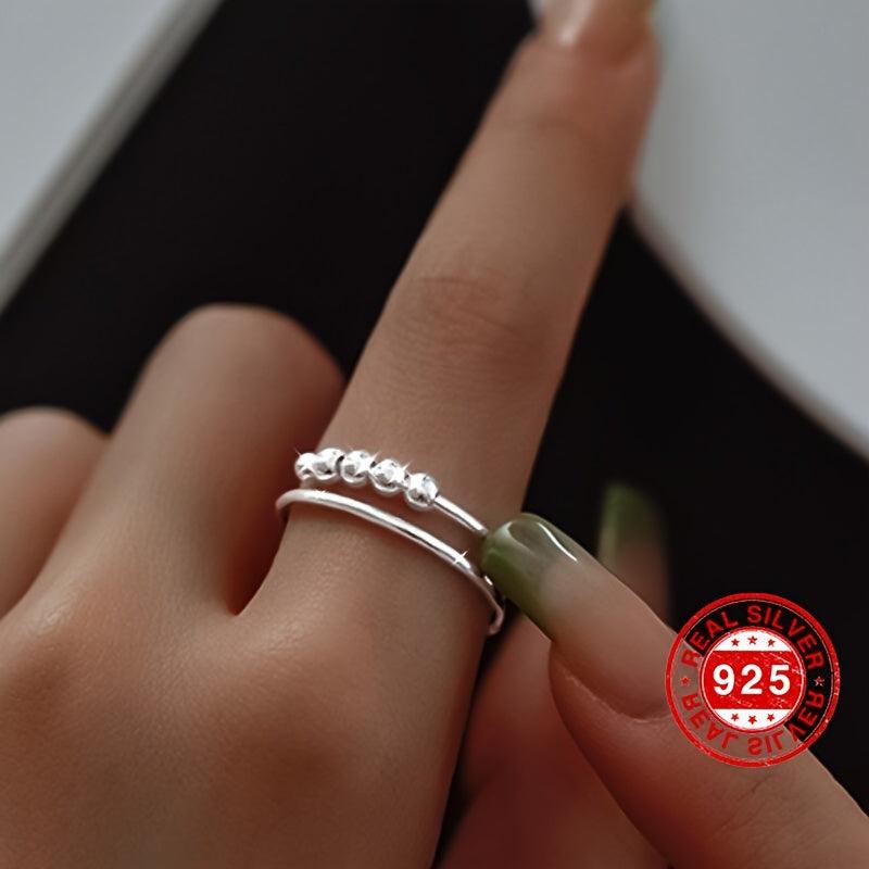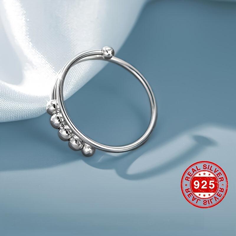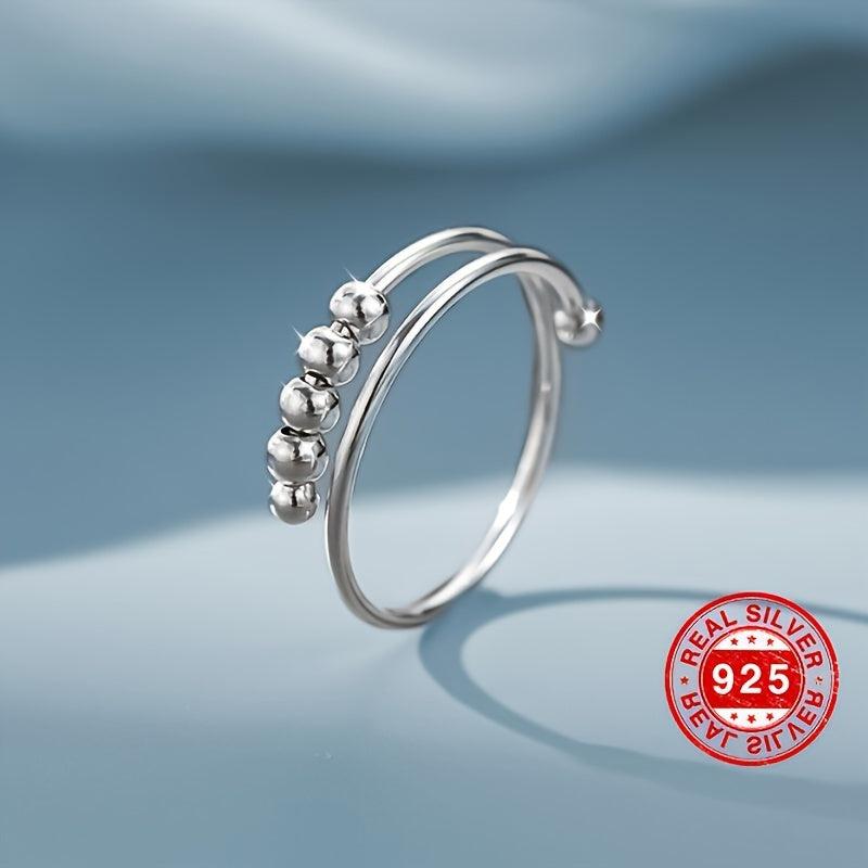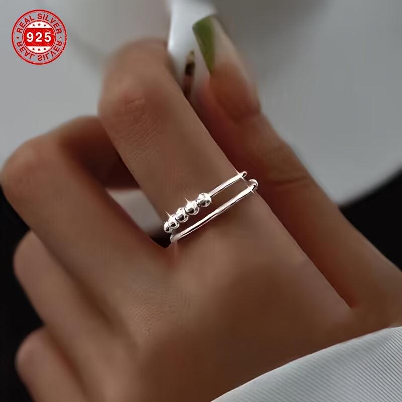 This stunning S925 pure silvery ring features a double layer rotatable round bead design. It is lightweight at 1.5g and ideal for women's index finger. Perfect for adding style to your outfit and suitable for Ramadan occasions.