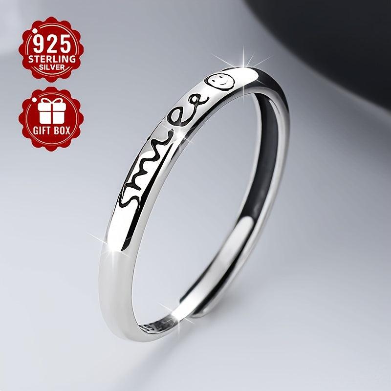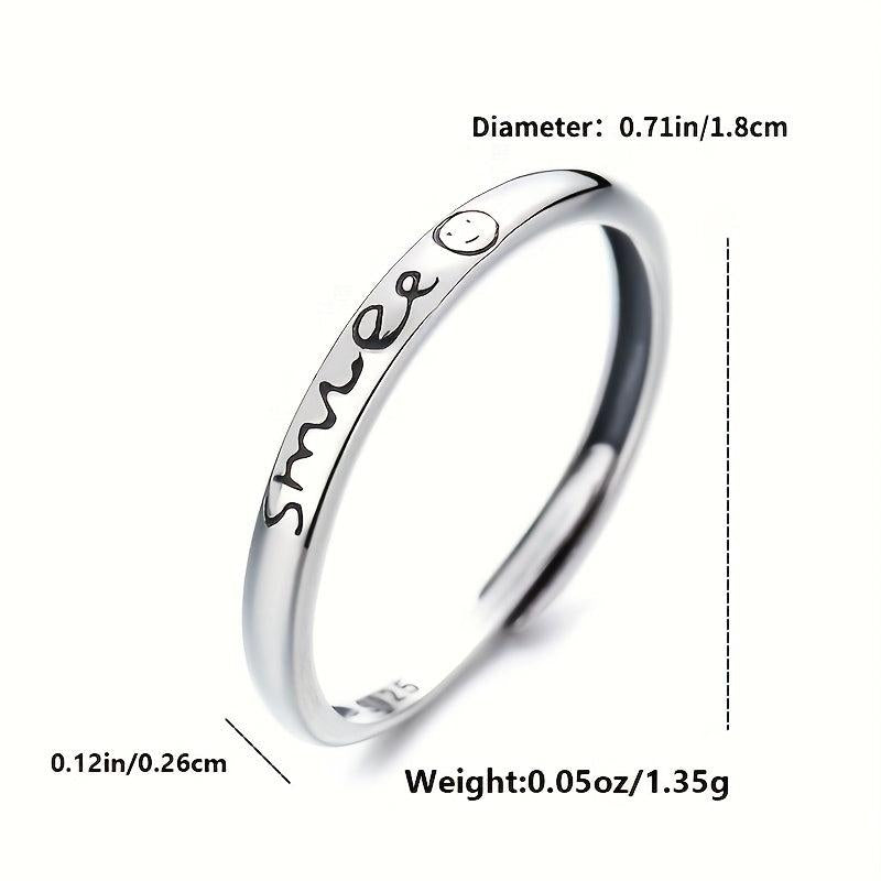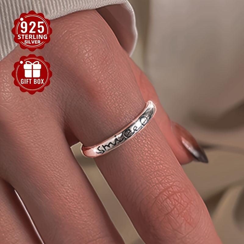 S925 Silvery English Letter Smile Ring Japanese Style Low Allergy Index