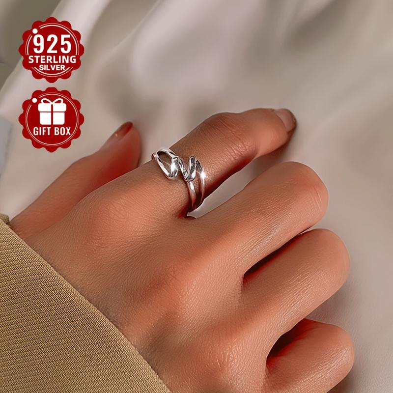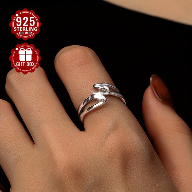This elegant ring features a Japanese-style design with geometric lines. It is made of high-quality S925 silver and is adjustable to fit different finger sizes. The ring is allergy-free, making it suitable for sensitive skin.