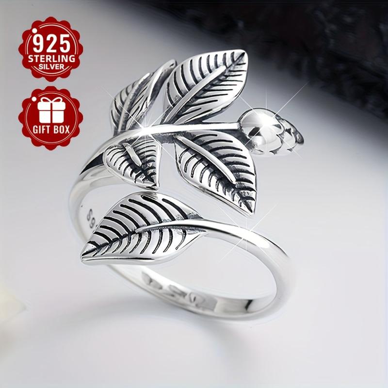 This beautiful S925 silvery retro leaf ring is a wide version with a total weight of about 5g. Perfect for holidays or daily wear.