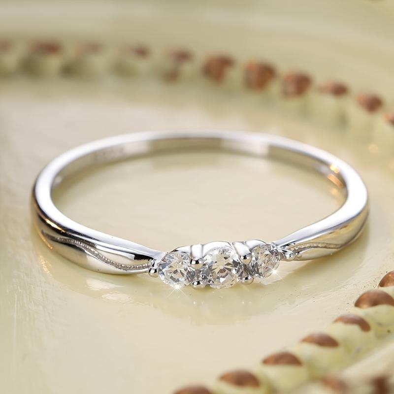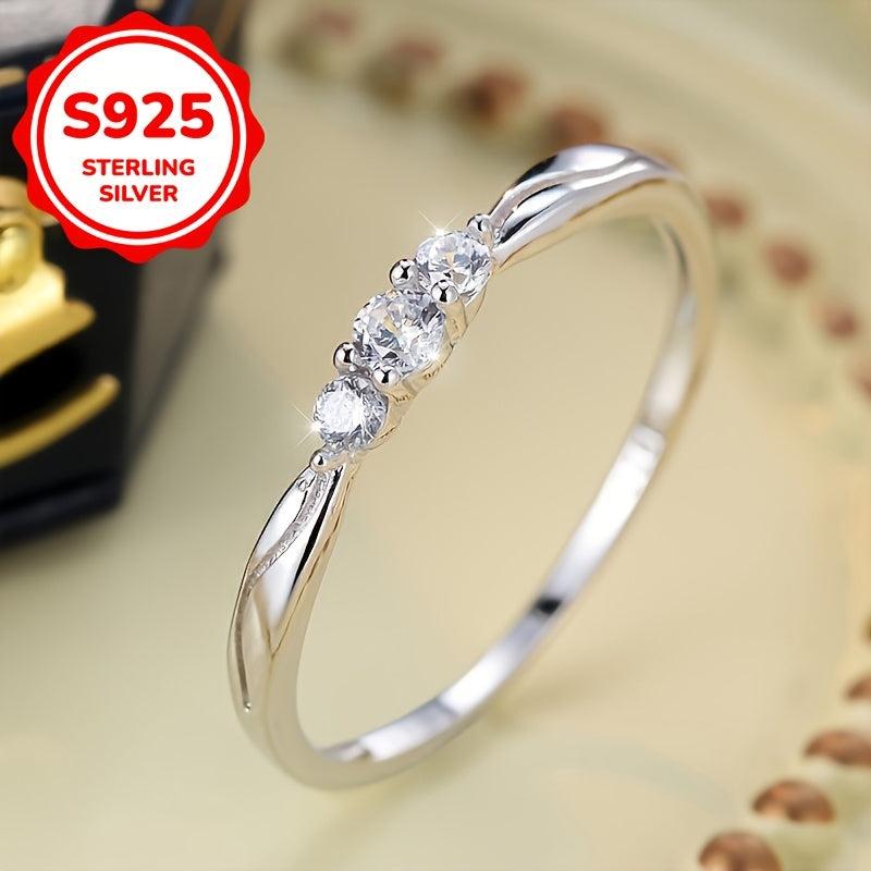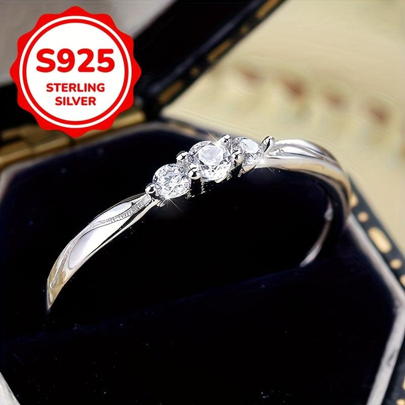Elegant S925 pure silver ring with three synthetic zirconia stones. Perfect for weddings, engagements, or everyday wear. Lightweight and versatile.