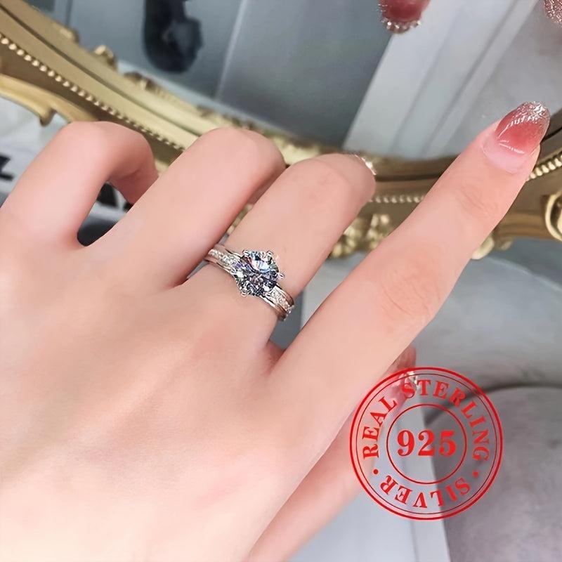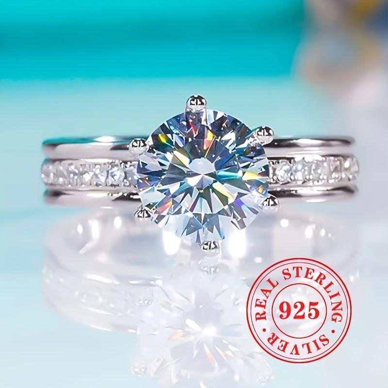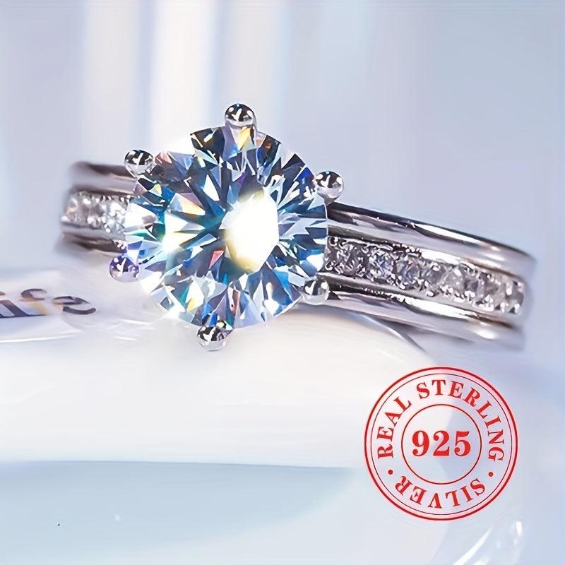 This classic ring features a synthetic zirconia stone set in a sterling silver 6-prong setting. Perfect for proposals, anniversaries, and special occasions.