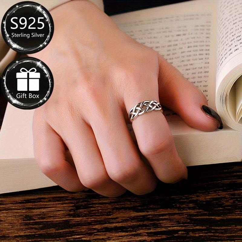 This S925 sterling silver braided ring has a retro punk style that is perfect for parties and holidays. It adds a unique touch to your look.