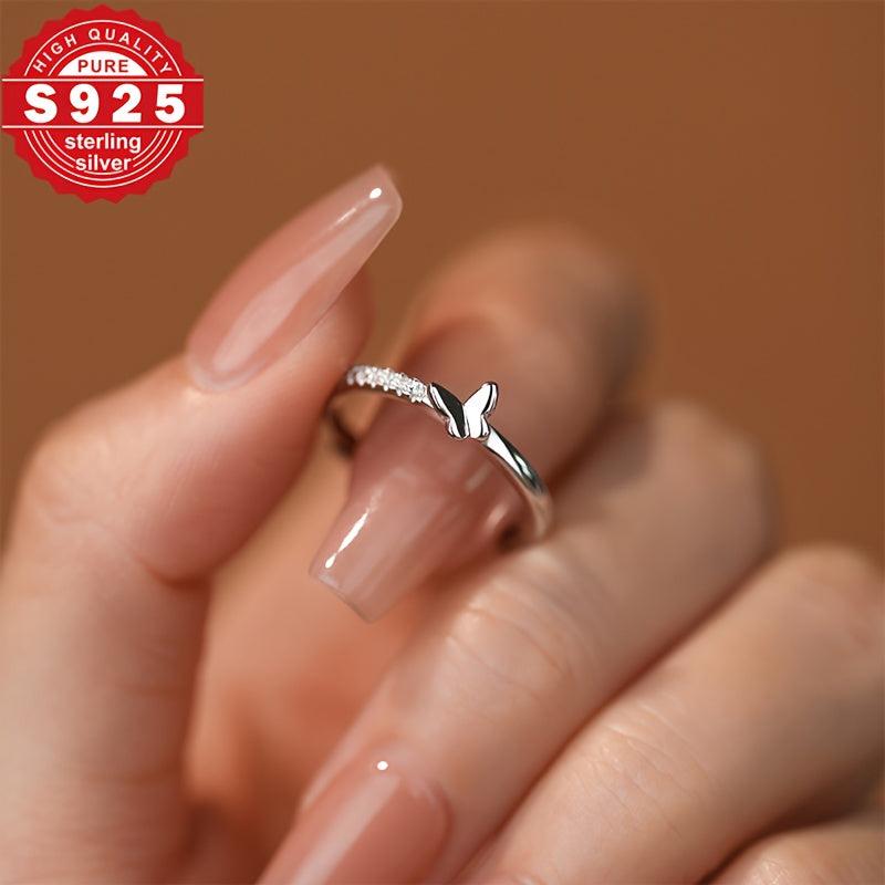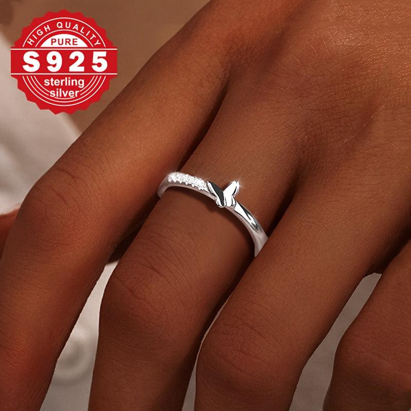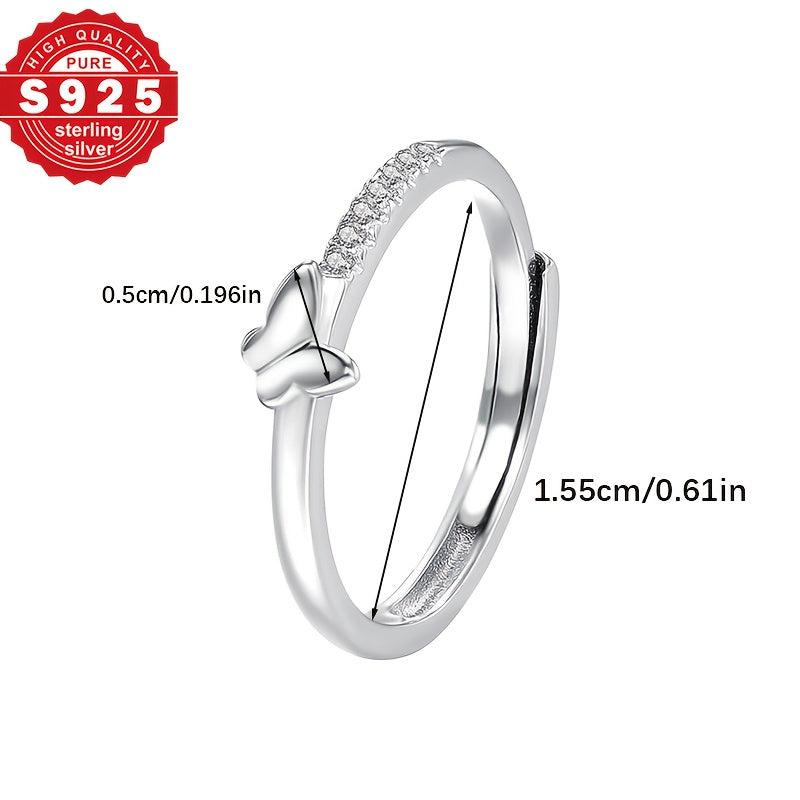 S925 Sterling Silver Butterfly Ring with Zirconia, Ideal for Daily Wear