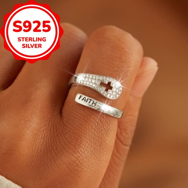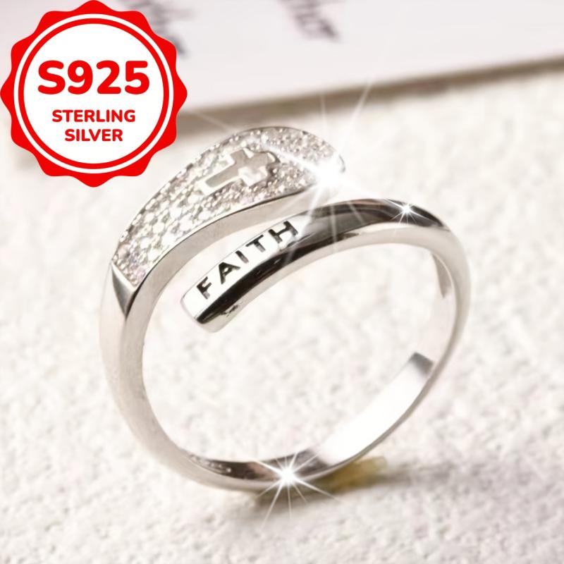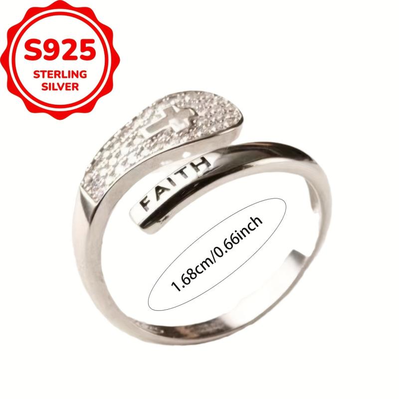 This sterling silver ring features a faith cross design with cubic zirconia, perfect for daily wear or special occasions. Its adjustable band makes it versatile and comfortable to wear. Ideal gift for Mother's Day.