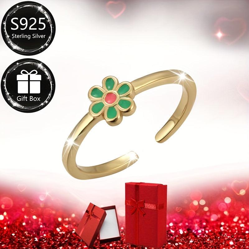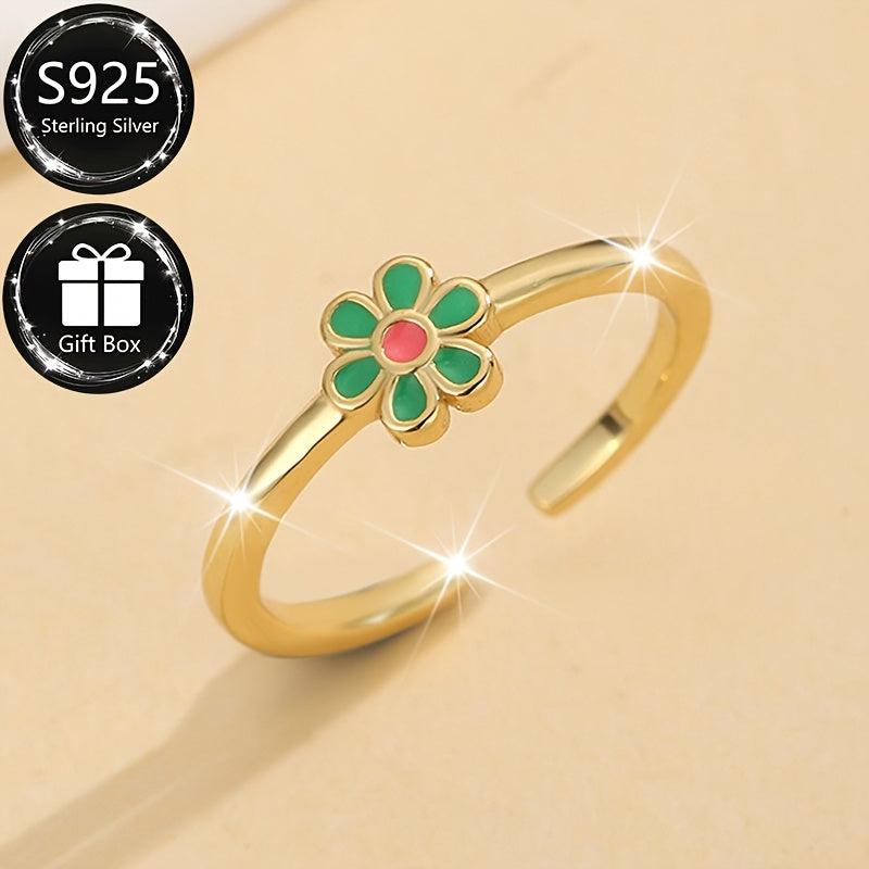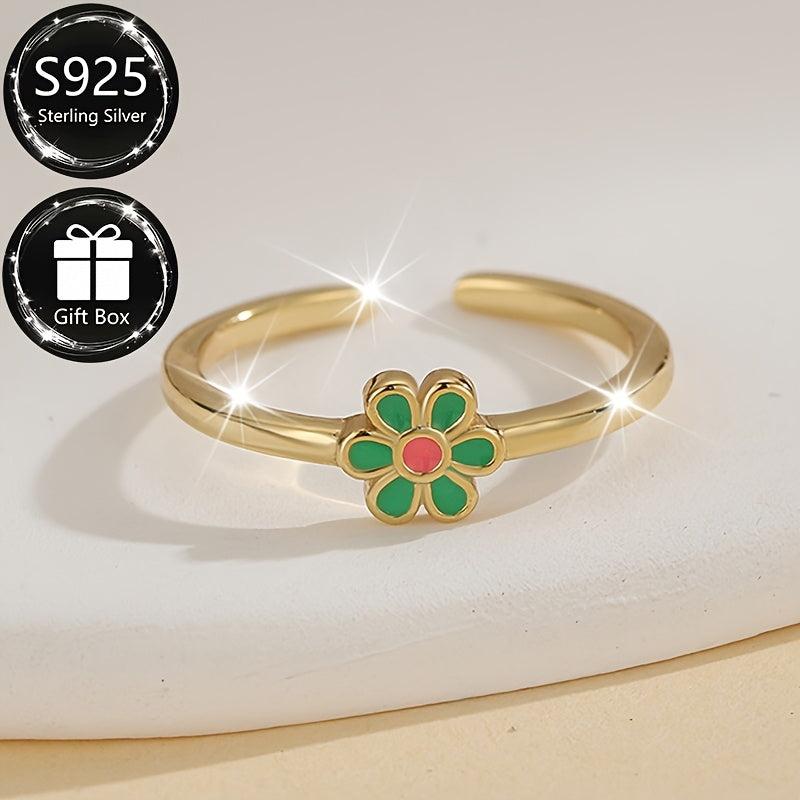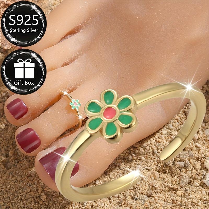 This beautiful S925 sterling silver toe ring features a small green flower with a drip glue finish, perfect for beach vacations and parties.